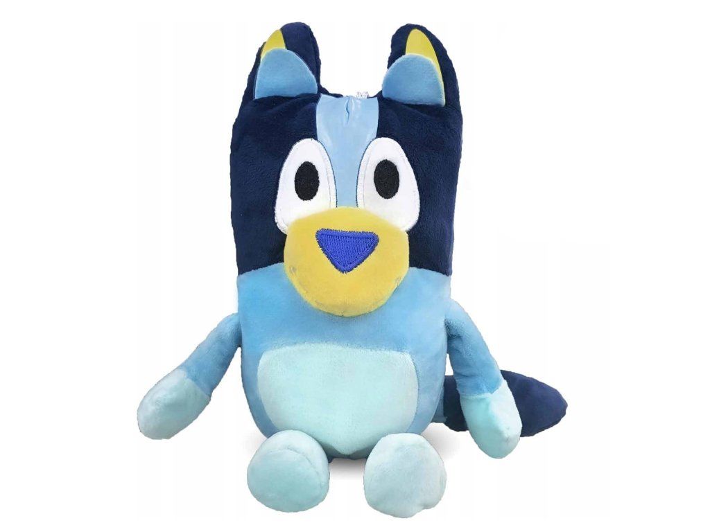 Bluey je roztomilá a priateľská psia postavička, ktorá zaujme svojim veselým vzhľadom a výraznými farbami. Hračka má detailne vypracované rysy, vrátane veľkých očí a širokého úsmevu, čo jej dodáva jedinečný charakter. Je vyrobená z mäkkého a príjemného materiálu, ktorý je ideálny na maznanie a bezpečný pre deti.