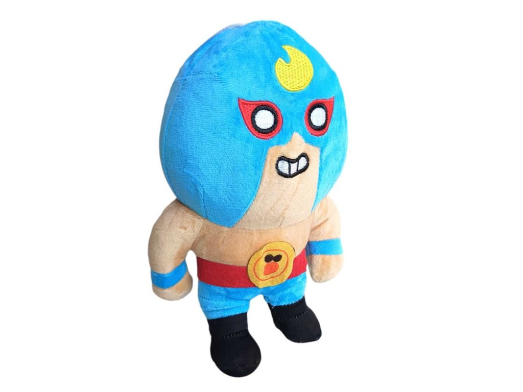 Táto hračka je vyrobená z vysoko kvalitného plyšu, ktorý je mäkký na dotyk, čo ju robí perfektnou pre maznanie a hranie. Hračka je oblečená do jasne modrej wrestlingovej masky a kostýmu s červeným opaskom, na ktorom je zlatá pracka s obrázkom, pripomínajúca jeho hernú verziu. Jeho svalnaté paže a silná postava dodávajú hračke pocit sily, rovnako ako El Primo v hre, kde je známy svojimi silnými útokmi a schopnosťou prežiť na bojovom poli.