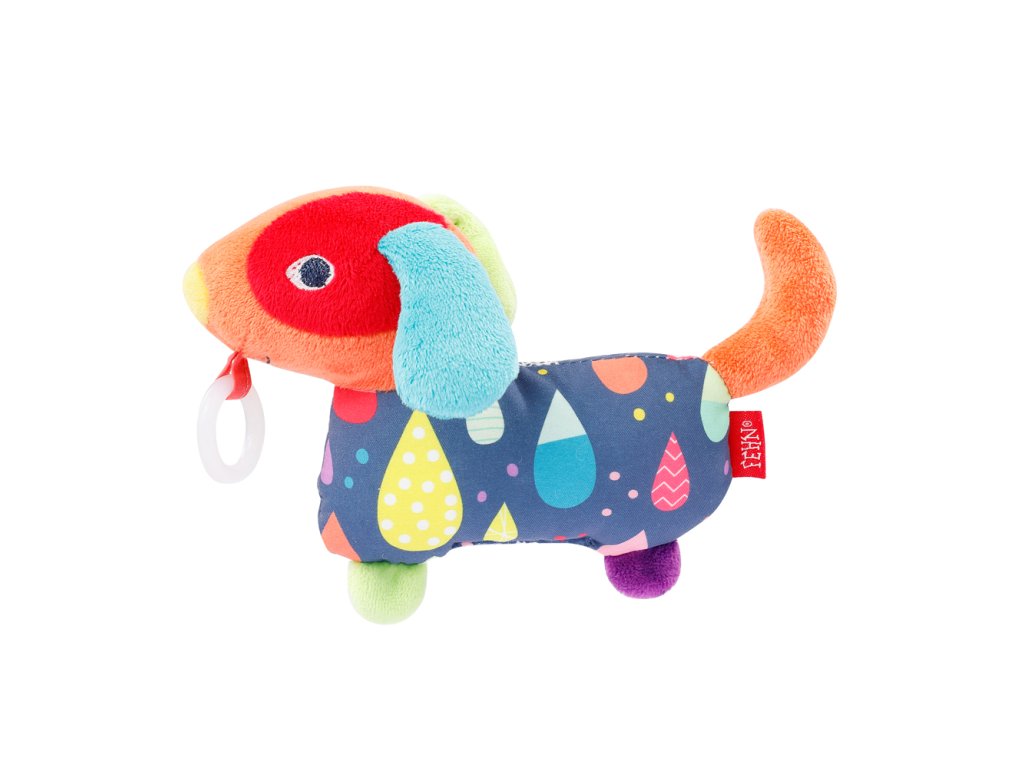 Roztomilý cumlík z kolekcie COLOR Friends je to pravé pre malých prieskumníkov sveta. Všetky praktické cumlíky s rukoväťou alebo bez nej možno pripevniť na silikónový krúžok. Dudlíková hračka je teda nielen krásna svojimi výraznými farbami a vzormi, ale aj super praktická. Skryté hrkálky v plyšovom psíkovi podporujú sluch dieťaťa, jeho uchopenie a dotyk, rovnako ako jemnú motoriku. Farebný uchopovacie pes je ideálny ako darček k narodeniu, krstu alebo narodeninám.Dodatočné parametre