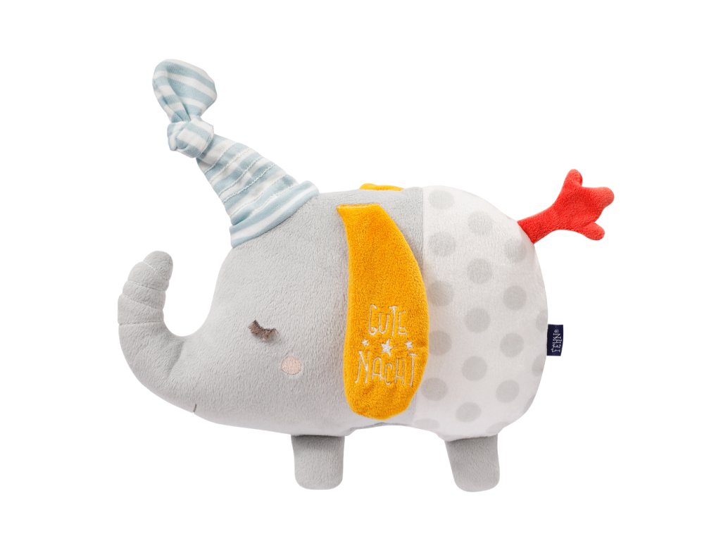 Mäkký a hrejivý plyšový sloník z príjemného velúru je dokonalým prvým priateľom. Môže slúžiť ako malý vankúšik, kamarát na hranie alebo ako verný ochranca v noci. Svetlá na sloníkovi pomôžu dieťaťu prekonať strach z tmy a zaistia mu príjemnejší spánok. Sloníka možno prať v práčke na jemný cyklus a maximálne 30 °C.