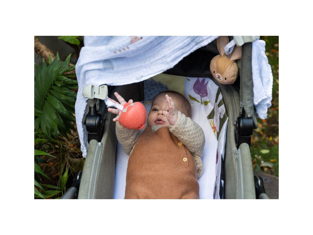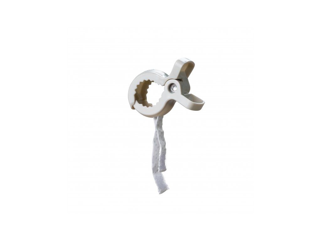 Plastové klipy uľahčujú pripevnenie textilnej plienky alebo hračiek ku kočíku. Puzdro na cumlík zaistí hygienické uloženie cumlíka kdekoľvek na cestách.