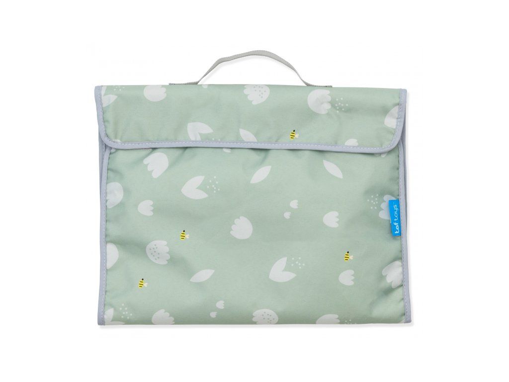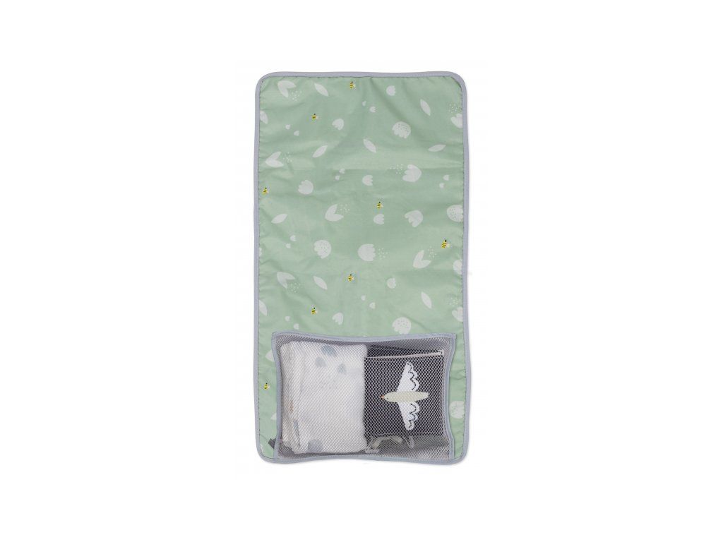 Prebaľovacia podložka rozmeru 62 x 50 cm ponúka vnútorný úložný priestor pre prehľadnú organizáciu prebaľovacích potrieb. Podložka sa skladá do tvaru kompaktnej prenosnej tašky na pohodlné cestovanie.