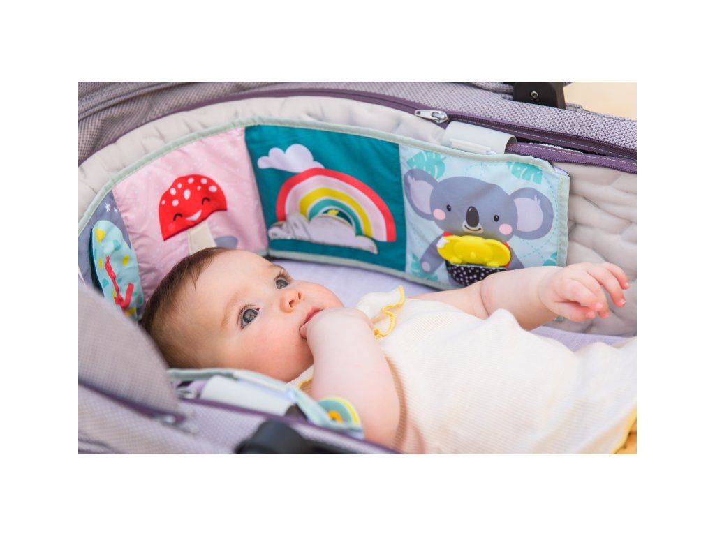 Obojstranná textilná knižka pre najmenších je určená do kočíka, postieľky aj na hraciu deku.