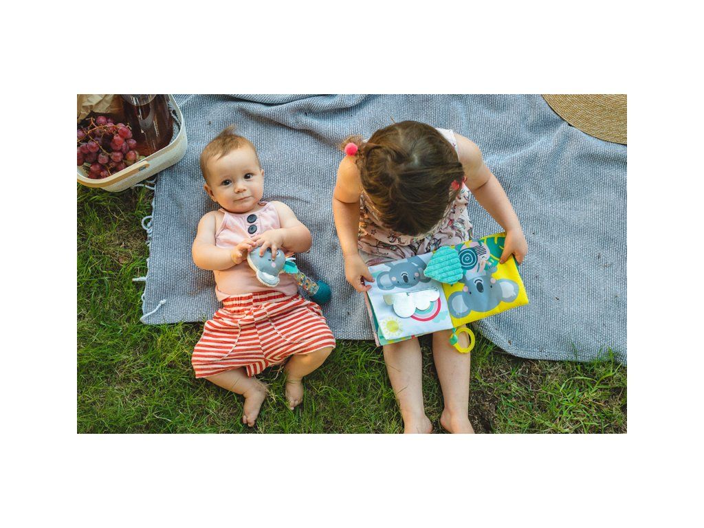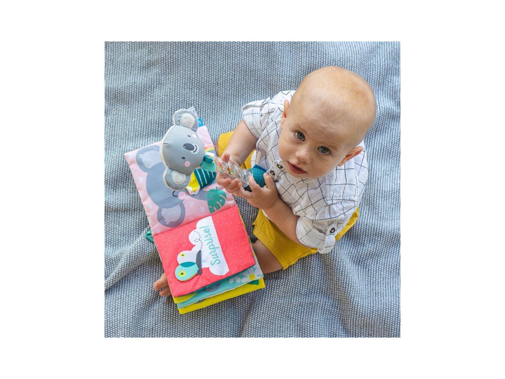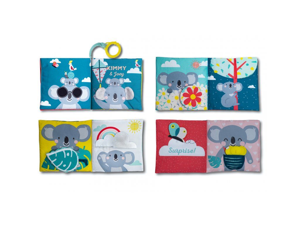 Textilná knižka s krásnymi obrázkami koaly Joeyho a jeho mamičky Kimmi vo vysoko kontrastných farbách pomáha rozvíjať zrak aj ostatné zmysly a jemnú motoriku dieťaťa. Jednotlivé stránky po stlačení jemne šuštia a ponúkajú dieťaťu rôznorodé aktivity a textúry pre skúmanie.