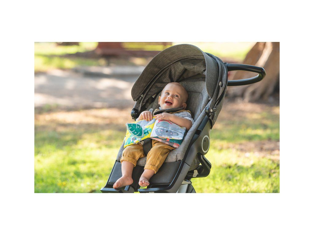Knižku je možné s pomocou plastového krúžku zavesiť napr. na autosedačku alebo kočík.