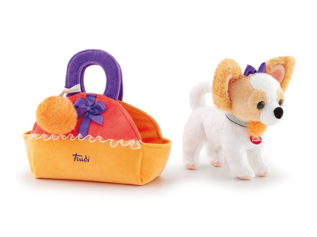 Vo vnútri tašky je krásny psík. Taška môže vášej malej slečne slúžiť aj ako módny doplnok k oblečeniu.