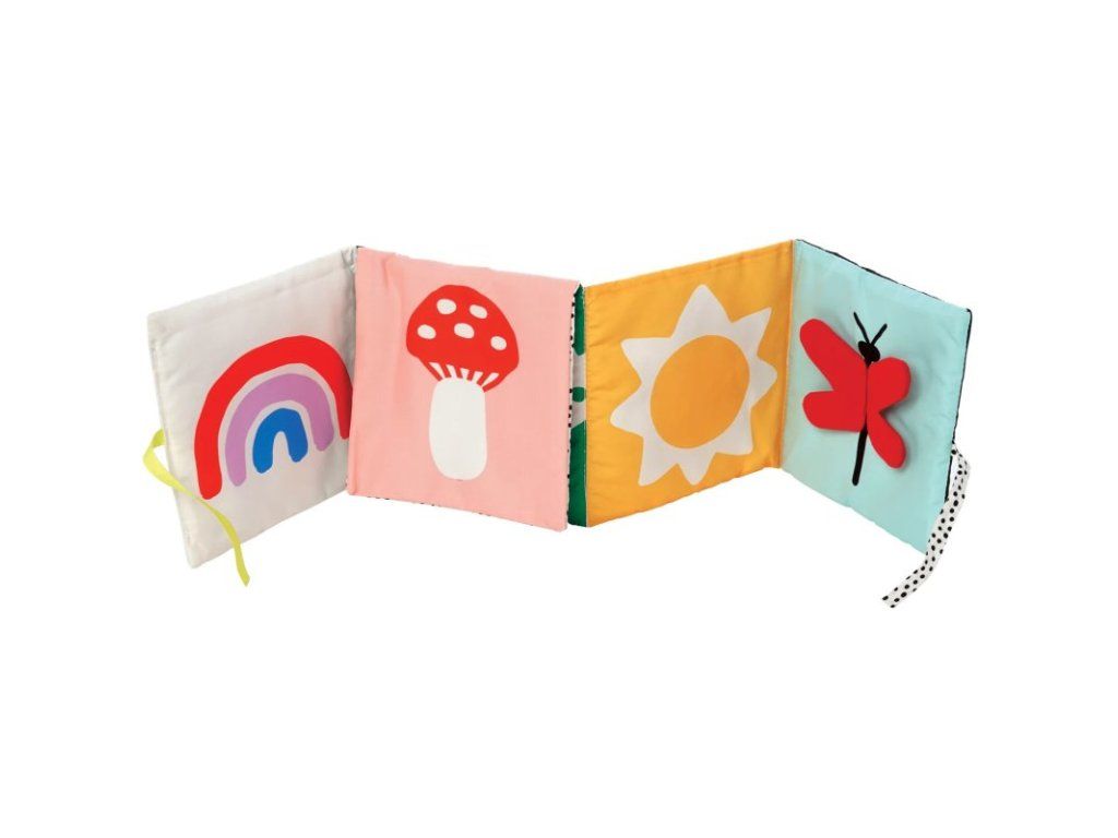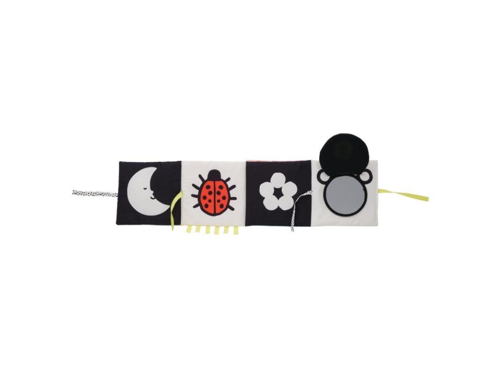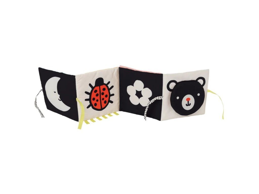 - látková knižka s kontrastnou grafikou rozvíjajúcou zmysly dieťatka, jemnú motoriku a kognitívne schopnosti