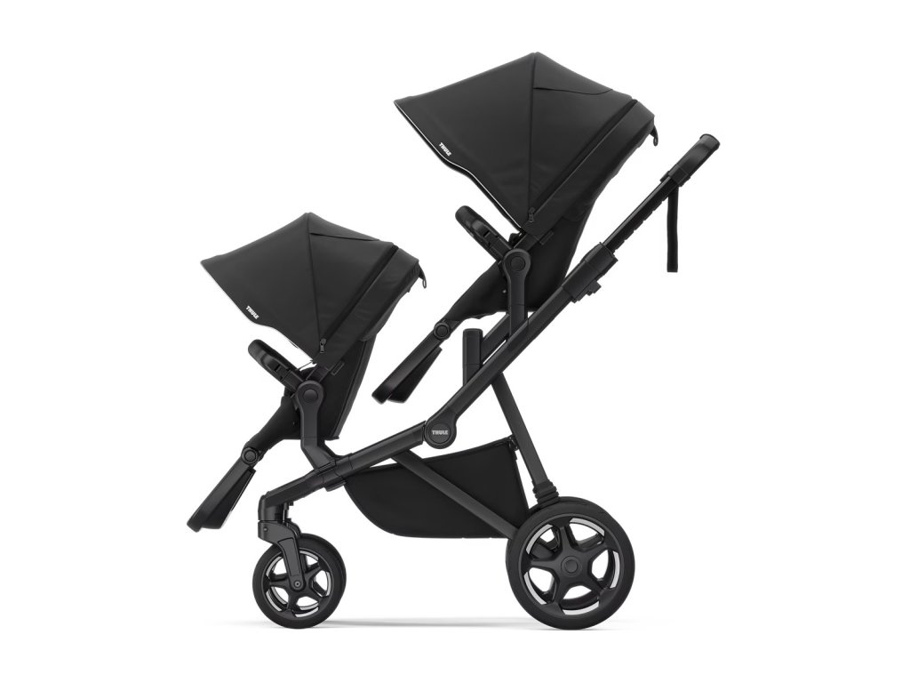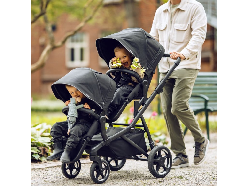 Veľké sedadlo a nastaviteľná opierka nôh poskytujú vášmu batoľaťu dostatok priestoru – aj v režime súrodenca – a obe deti tak zostanú blízko vás