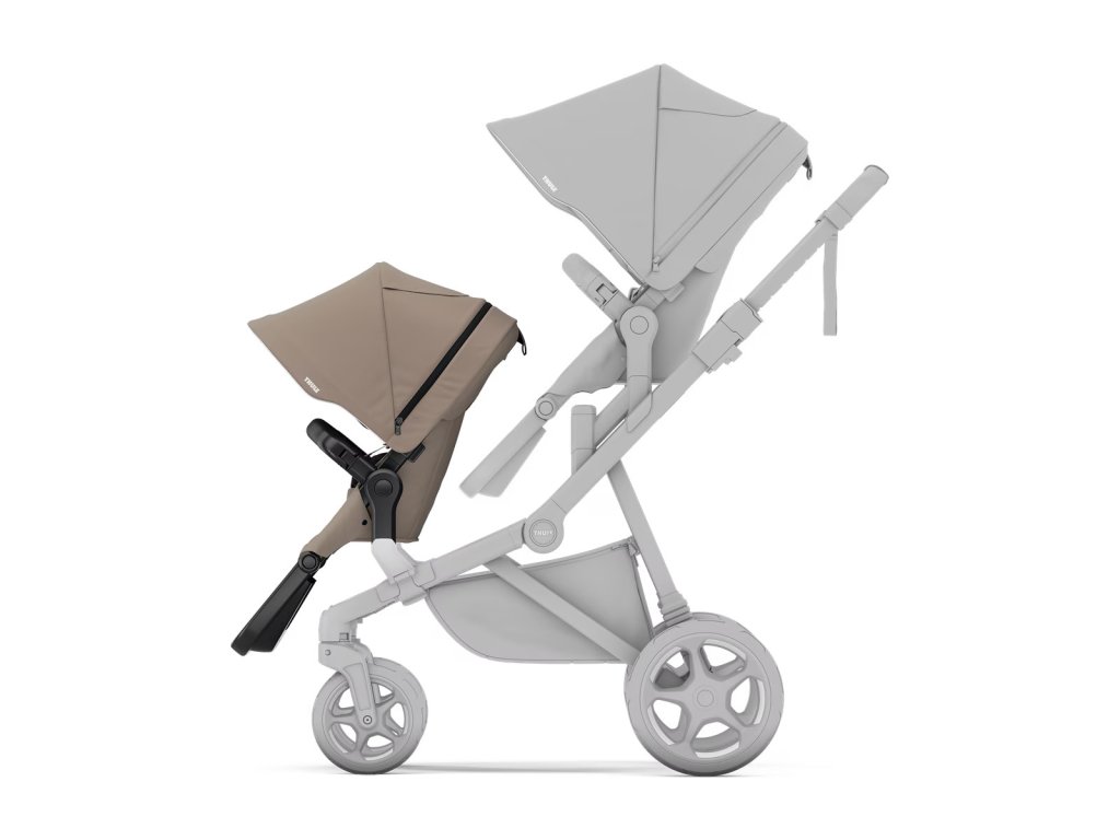Jednoducho premeňte svoj Thule Sleek 2 na pohodlný kočík pre súrodencov – stačí pridať súrodeneckú sedačku Thule Sleek 2 a obe deti sú pripravené na jazdu.