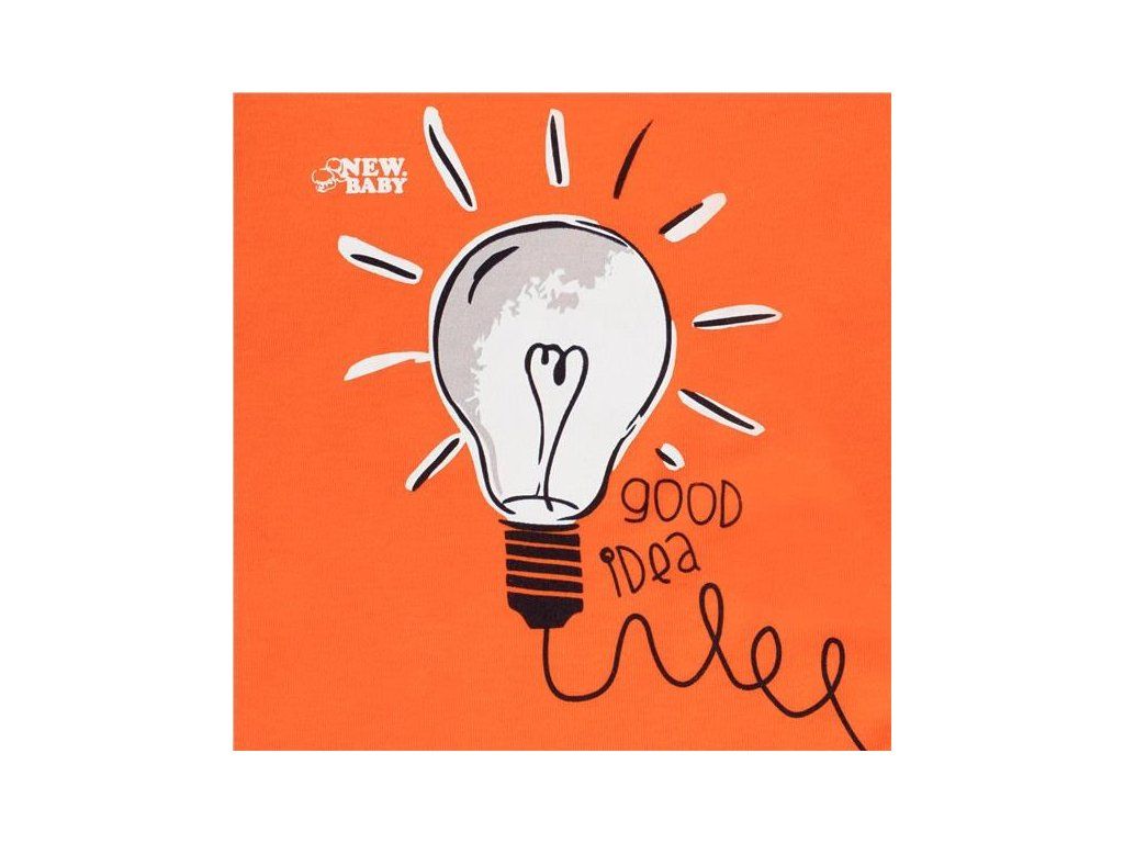 Bavlnené dojčenské tričko New Baby Happy Bulbs. Tričko s dlhým rukávom a farebným lemom okolo krčku, rukávov a v páse je celopotlačené vtipnými a šťastnými žiarovkami s nápisom good idea. Zapínanie na ramienku na cvoček uľahčí obliekanie. Tričko je vyrobené s ohľadom na potreby malých detí s veľmi príjemného materiálu. Zloženie: 100% bavlna.Dodatočné parametre