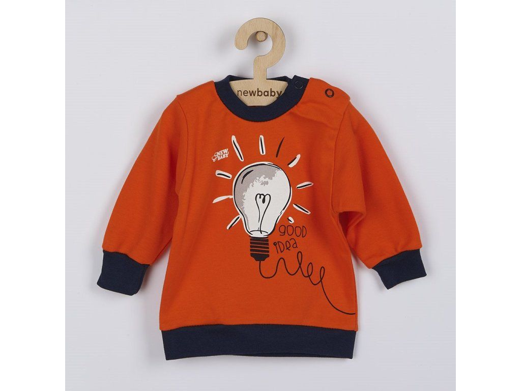Bavlnené dojčenské tričko New Baby Happy Bulbs. Tričko s dlhým rukávom a farebným lemom okolo krčku, rukávov a v páse je celopotlačené vtipnými a šťastnými žiarovkami s nápisom good idea. Zapínanie na ramienku na cvoček uľahčí obliekanie. Tričko je vyrobené s ohľadom na potreby malých detí s veľmi príjemného materiálu. Zloženie: 100% bavlna.Dodatočné parametre