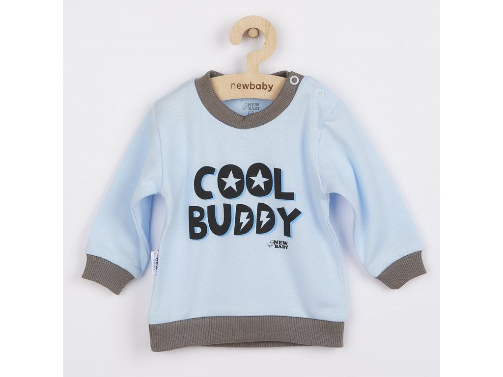 Bavlnené dojčenské tričko New Baby With Love. Tričko s dlhým rukávom a sivým lemom okolo krčku a rukávov je ozdobené nápisom COOL BUDDY. Zapínanie na ramienku na cvočky. Zloženie 100% bavlna.Dodatočné parametre