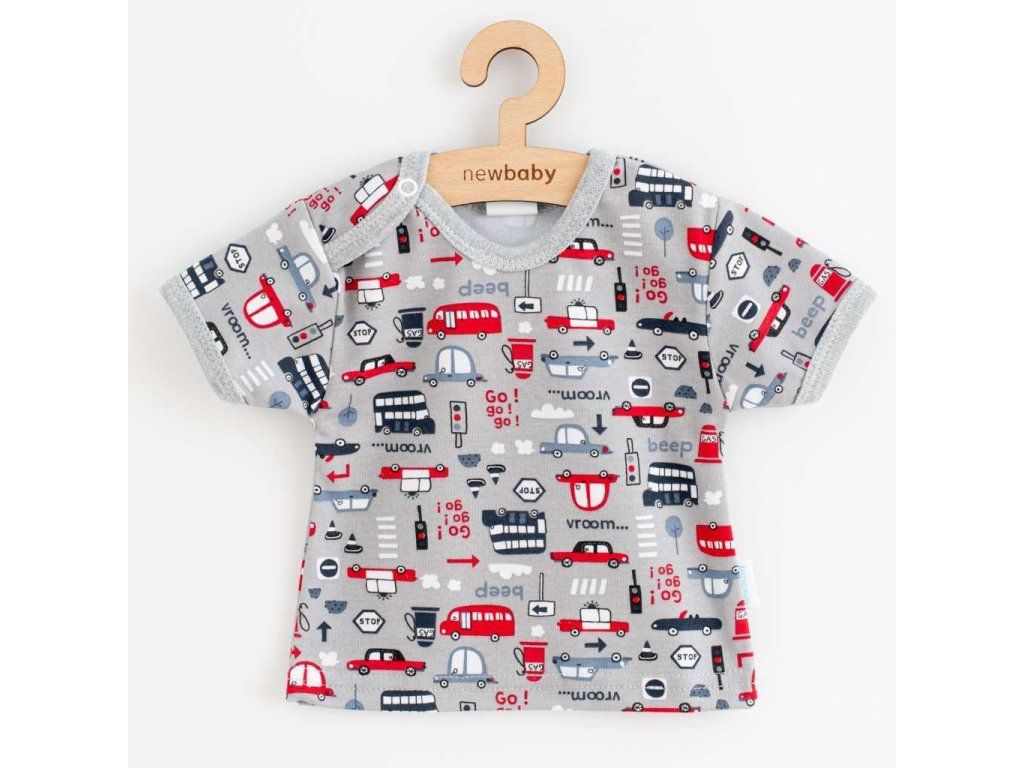Krásne bavlnené dojčenské tričko New Baby Go!go!go!. Tričko s krátkym rukávom celopotlačené autíčkami. Bez zapínania, cez hlavičku. Tričko je vyrobené s ohľadom na potreby malých detí s veľmi príjemného materiálu. Zloženie: 100% bavlna. Do kolekcie Go!go!go! patria: body s krátkym rukávom, tričko s krátkym rukávom, tepláčiky a čiapočka a kraťasy.Dodatočné parametre