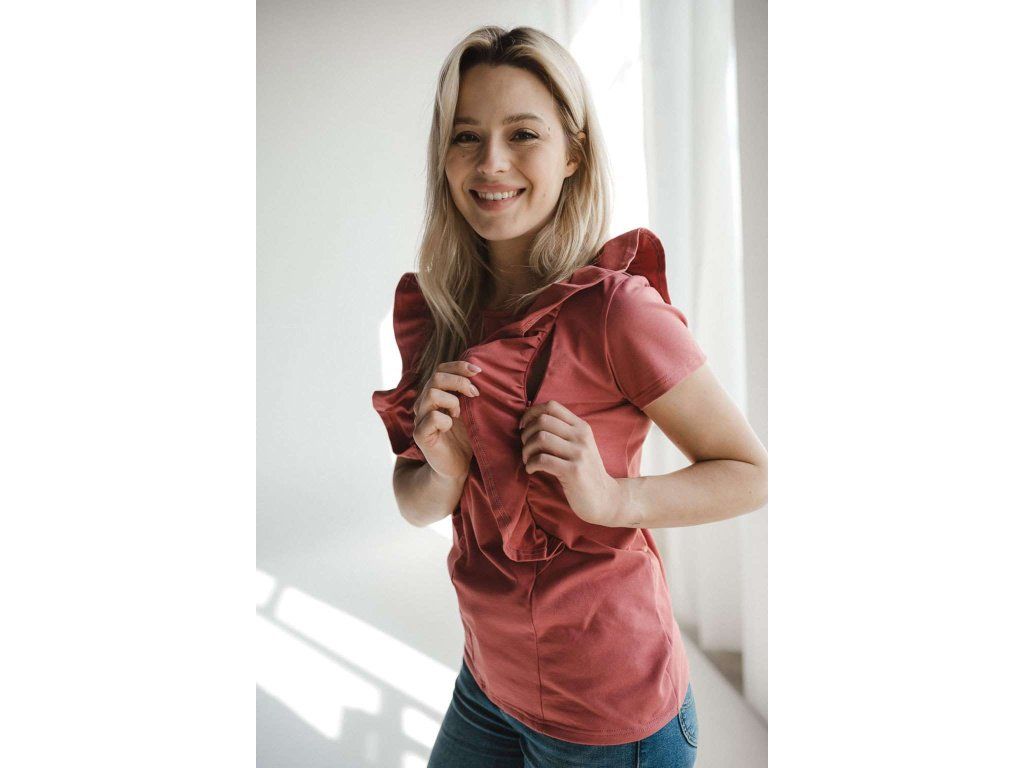 Dojčiace tričko Milky Waves milk & love krátky rukáv. Milky Waves je blúzka pre dojčiacu mamičku s volánmi, pod ktorými máme skryté zipsy, ktoré sa otvárajú zvrchu. Volánkovanie má dve funkcie - prvou je samozrejme krásna a módna ozdoba, vďaka ktorej je blúzka mimoriadne ženská . A druhou výhodou volánkov je možnosť použiť ich ako malý kryt na oči dieťaťa - keď sa bábätko nevie sústrediť na papanie a potrebujeme ho aspoň trochu oddeliť od vonkajšieho ruchu. Blúzky na dojčenie Milky Waves sú, rovnako ako všetky naše dojčenské odevy vyrobené z kvalitnej bavlny s prídavkom elastanu, vďaka čomu sa nevyťahujú. Ide o najkvalitnejší úplet, ktorý sa nebojí opakovaného prania. Oblečenie sa meria naplocho, takže rozmery uvedené v tabuľke-(posledná fotografia) najlepšie porovnáte s rozmermi oblečenia, ktoré vám aktuálne sedí. Ak váhate medzi dvoma veľkosťami vyberte si menšiu. Najkvalitnejšie priedušné látky, ktoré prešli prísnymi testami Oeko-Tex Standard 100. Vďaka nim je oblečenie mäkké a príjemné na dotyk pre mamičku aj dieťa. Zloženie: 92% bavlna, 8% elastan.Dodatočné parametre