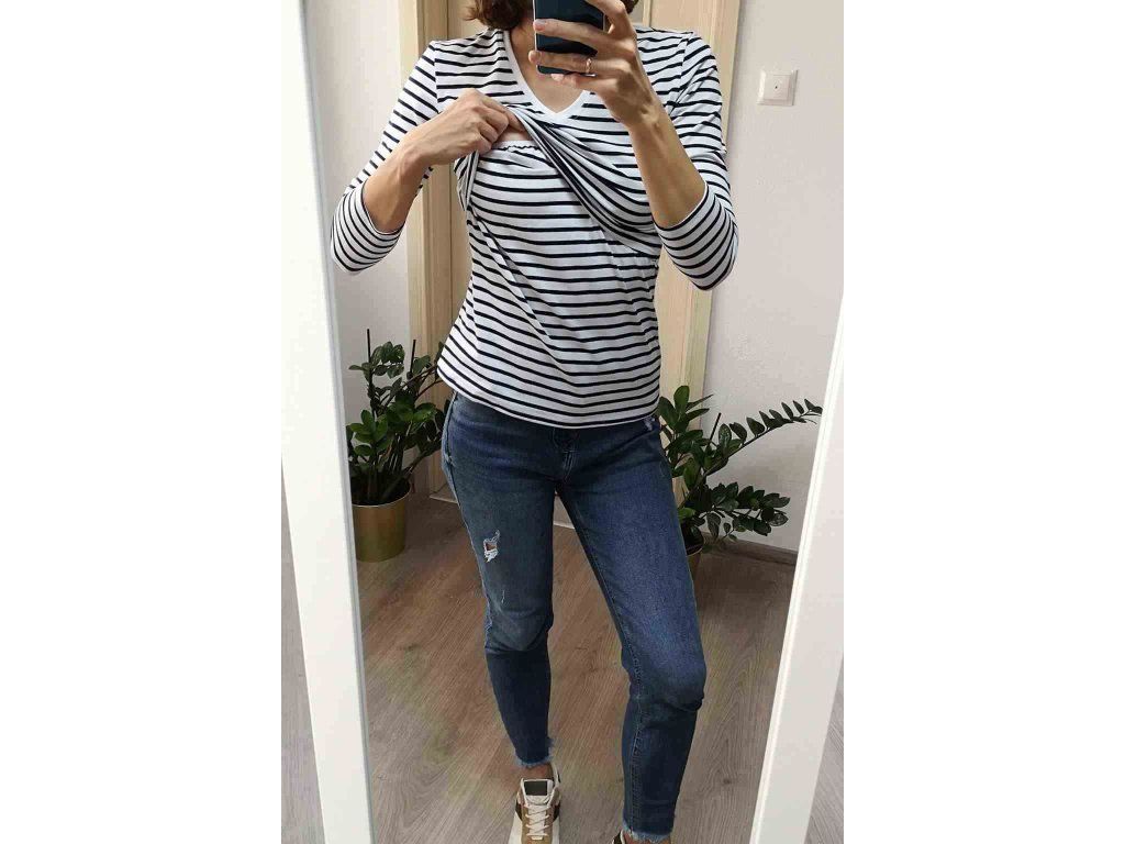 Tehotenské a dojčiace tričko Milk Shirt milk & love s výstrihom do V. Tričko, ktoré uľahčí dojčenie je vyrobené z kvalitnej bavlny s prídavkom elastanu, vďaka ktorému sa nevyťahuje a po vypraní sa vracia do pôvodného tvaru. Preto vyzerá skvele aj po tehotenstve a je možné ho používať aj pri dojčení. Jednoduché otváranie "slučkou" umožňuje veľmi rýchlo nakŕmiť hladné bábätko. Správny strih, ktorý zakryje drobné nedostatky postavy, ktorá sa ešte nespamätala z tehotenstva a dostatočne dlhý, aby zakryl chrbát. Elastická látka pojme aj tehotenské bruško. Pri výbere veľkosti sa riaďte veľkosťou, ktorú aktuálne nosíte. Oblečenie je vyrobené z elastickej látky, preto sa prispôsobí veľkosti tehotenského bruška a meniacim sa tvarom tela. Oblečenie sa meria naplocho, takže rozmery uvedené v tabuľke-(posledná fotografia) najlepšie porovnáte s rozmermi oblečenia, ktoré vám aktuálne sedí. Najkvalitnejšie priedušné látky, ktoré prešli prísnymi testami Oeko-Tex Standard 100. Vďaka nim je oblečenie mäkké a príjemné na dotyk pre mamičku aj dieťa. Zloženie: 92% bavlna, 8% elastan. Dĺžka rukávov 7/8.Dodatočné parametre