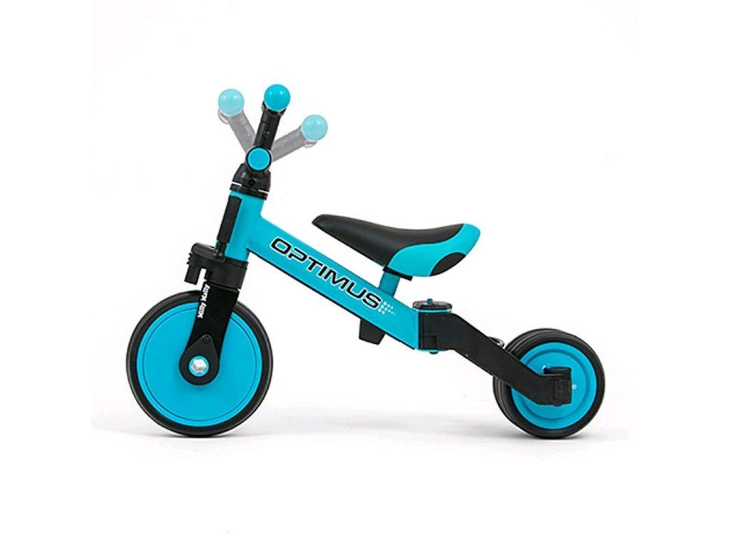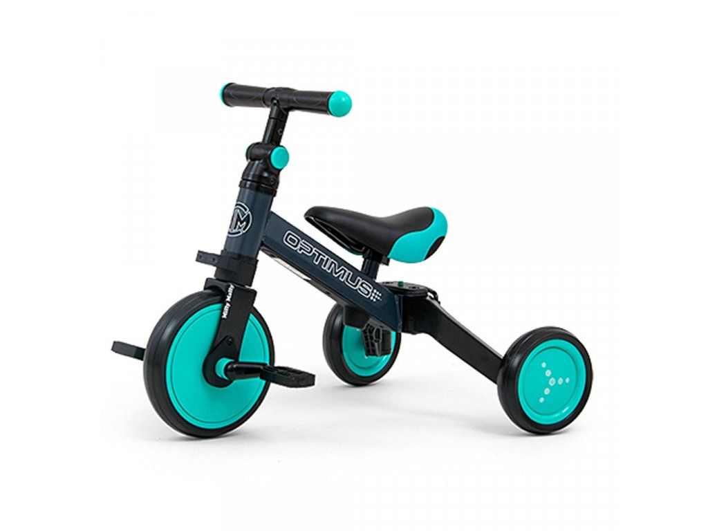 Univerzálna detská šliapacia trojkolka Milly Mally 3v1 Optimus bola navrhnutá tak, aby sa stala tým najlepším čo môžete ponúknuť svojmu malému pretekárovi. Vďaka stabilnej konštrukcii poskytuje dieťaťu maximálnu úroveň bezpečnosti a týmto mu uľahčuje získavanie nových zručností. Najväčšou výhodou tejto trojkolky je jej variabilita. Akonáhle dieťa získa základy jazdy, pripojíme pedále, alebo ju počas okamihu zmeníme na klasické jednostopové odrážadlo. Penové kolesá výborne absorbujú nárazy, poskytujú dobrú priľnavosť, zaistia pohodlie počas jazdy a neunavia vášho malého pretekára. Dostatočná vzdialenosť kolies medzi sebou poskytuje mimoriadnu stabilitu, bezpečnosť počas používania doma i vonku. Doraz nedovolí pretočenie riadidiel.