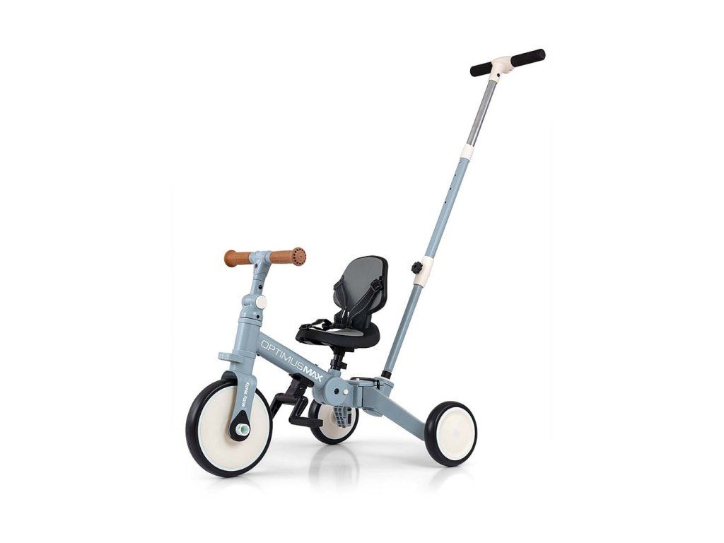 Detská trojkolka 5v1 Milly Mally Optimus Max s vodiacou tyčou denim - 58434