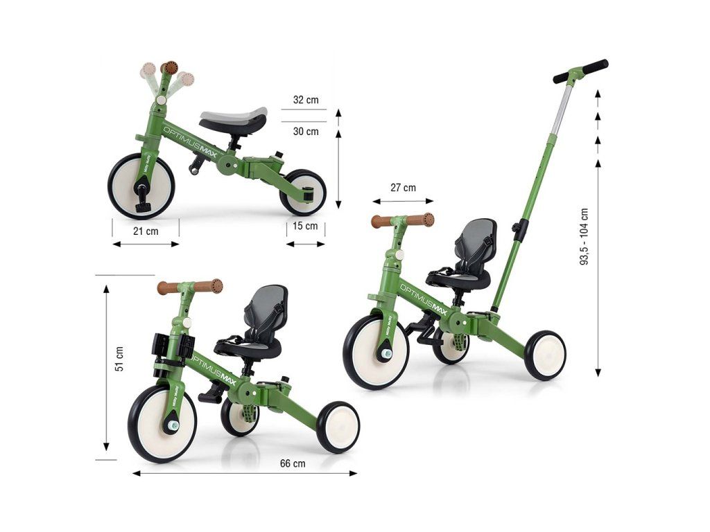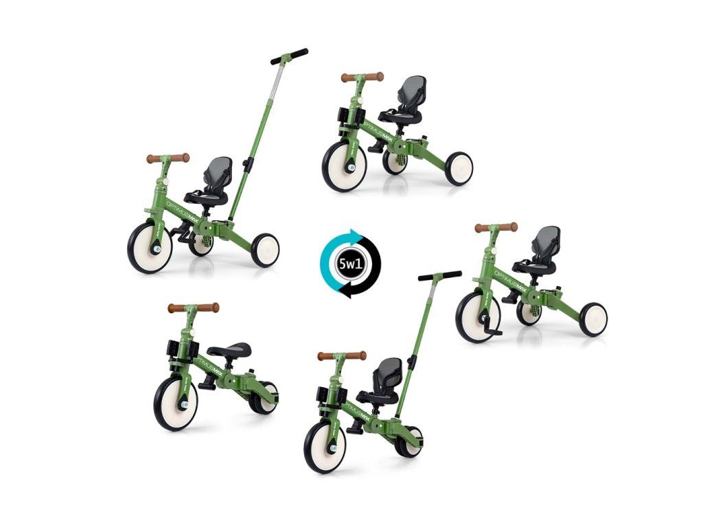 Detská trojkolka 5v1 Milly Mally Optimus Max s vodiacou tyčou green - 58436