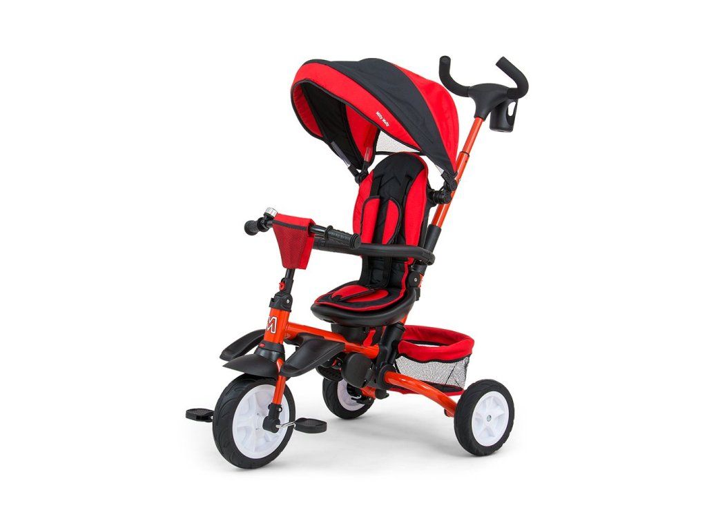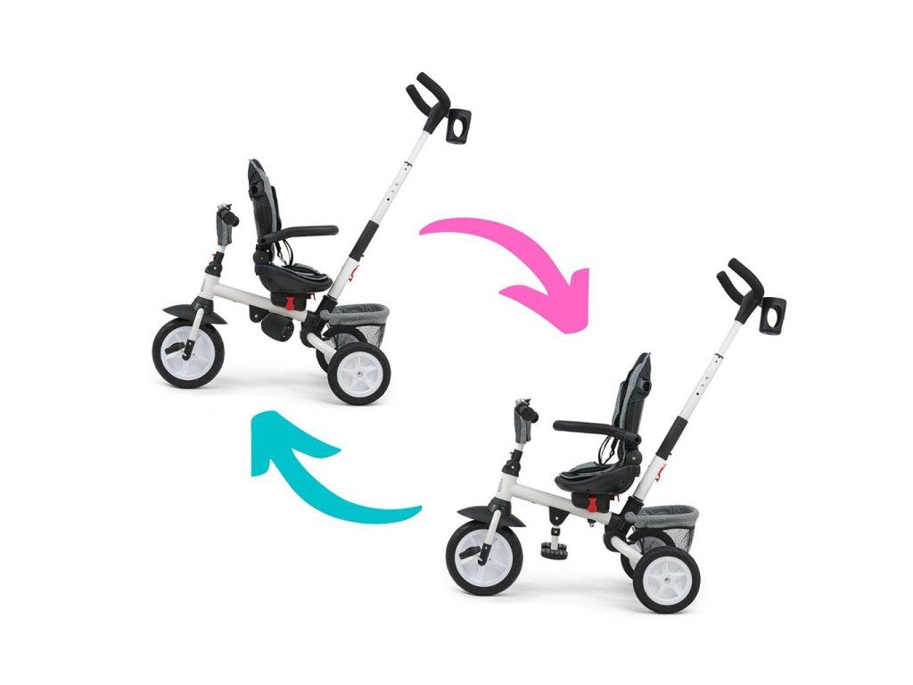 Je vyrobená z kvalitných a odolných materiálov. Má modernú konštrukciu, pohodlné a ergonomicky tvarované sedadlo, ktoré je otočné o 360 stupňov, čo umožní dieťaťu cestovať v smere alebo proti smeru jazdy. O pohodlie a bezpečie počas jazdy sa starjú bariérky, trojbodové bezpečnostné pásy, pohodlné stúpačky alebo gumové kolesá, ktoré skvele absorbujú narázy a poskytujú dobrú priľnavosť. Trojkolku môže ovládať ako dieťa, tak aj rodič pomocou nastaviteľnej rukoväte pre tlačenie. Po odobratí vodiacej tyče, sklápacej striešky, ktorá chráni pred slnkom alebo ostatných komponentov bude slúžiť ako trojkolka. Trojkolku je možné používať aj ako alternatívu golfového kočíka. Pre uloženie hračiek alebo potrieb pre dieťa je tu praktický úložný košík.