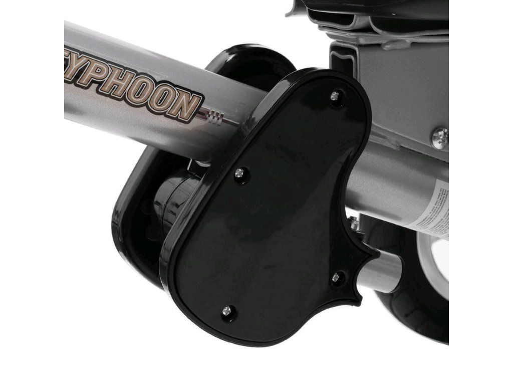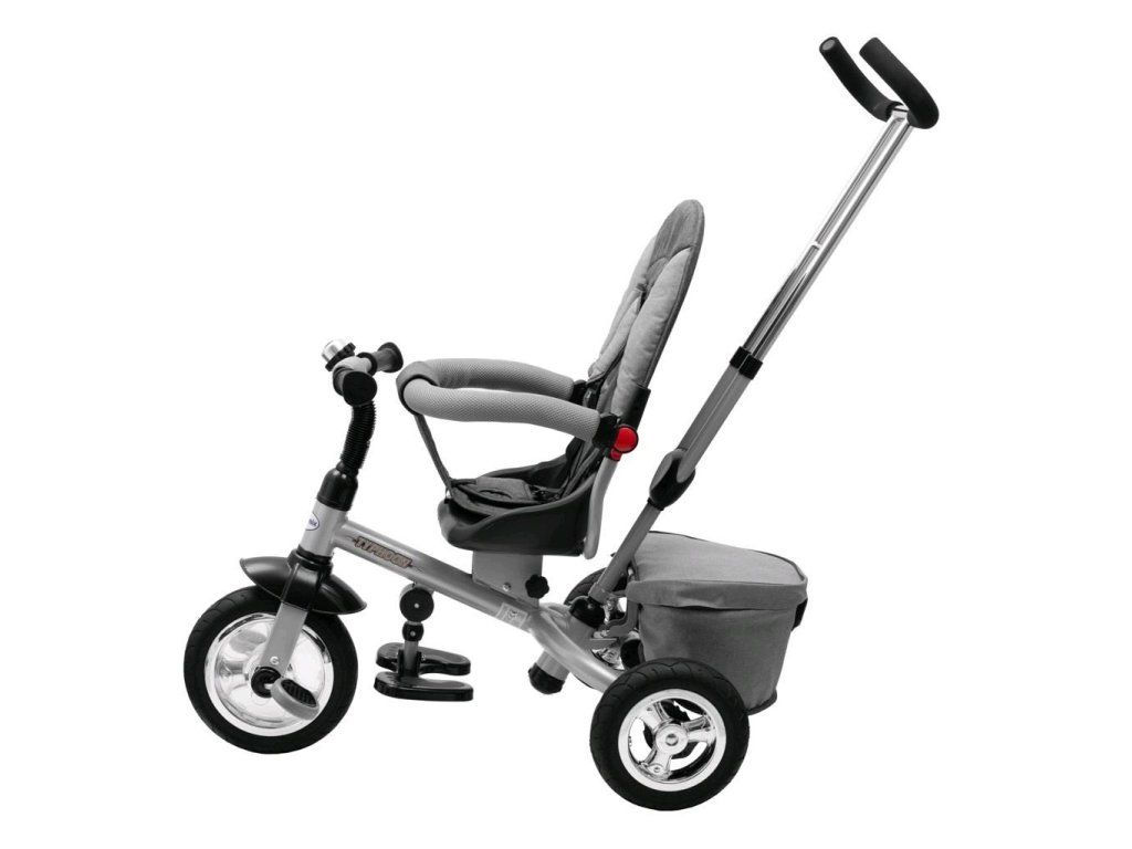 Detská šliapacia trojkolka Baby Mix TYPHOON je multifunkčný dopravný prostriedok a je typickým príkladom produktov GROW UP - rastie zároveň s dieťaťom. Trojkolku môže ovládať ako dieťa, tak aj rodič pomocou nastaviteľnej vodiacej tyče. Po odobratí vodiacej tyče, sklápacej striešky a opierok bude slúžiť ako klasická šliapacia trojkolka. Pevná oceľová konštrukcia zaistí dieťaťu bezpečnosť a zaručí jej používanie po mnoho rokov. Pohodlné a ergonomicky tvarované sedadlo je otočné o 360 stupňov, čo umožní dieťaťu cestovať v smere alebo proti smeru jazdy. O pohodlie a bezpečie počas jazdy sa stará odnímateľná hrazda, trojbodové bezpečnostné pásy, pohodlné odnímateľné stupačky alebo gumové kolesá, ktorá skvele absorbujú nerovnosti, poskytujú perfektnú priľnavosť a nevyžadujú hustenie. Pre uloženie hračiek alebo potrieb pre dieťa je tu praktický úložný košík.