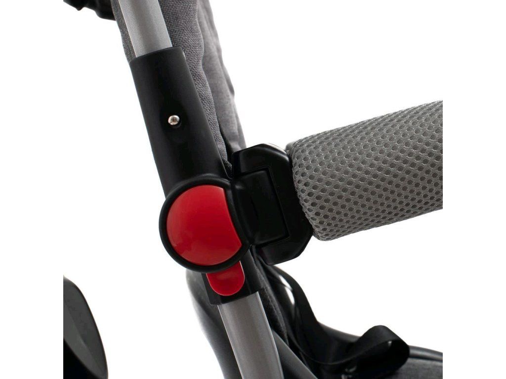 Detská šliapacia trojkolka Baby Mix TYPHOON je multifunkčný dopravný prostriedok a je typickým príkladom produktov GROW UP - rastie zároveň s dieťaťom. Trojkolku môže ovládať ako dieťa, tak aj rodič pomocou nastaviteľnej vodiacej tyče. Po odobratí vodiacej tyče, sklápacej striešky a opierok bude slúžiť ako klasická šliapacia trojkolka. Pevná oceľová konštrukcia zaistí dieťaťu bezpečnosť a zaručí jej používanie po mnoho rokov. Pohodlné a ergonomicky tvarované sedadlo je otočné o 360 stupňov, čo umožní dieťaťu cestovať v smere alebo proti smeru jazdy. O pohodlie a bezpečie počas jazdy sa stará odnímateľná hrazda, trojbodové bezpečnostné pásy, pohodlné odnímateľné stupačky alebo gumové kolesá, ktorá skvele absorbujú nerovnosti, poskytujú perfektnú priľnavosť a nevyžadujú hustenie. Pre uloženie hračiek alebo potrieb pre dieťa je tu praktický úložný košík.
