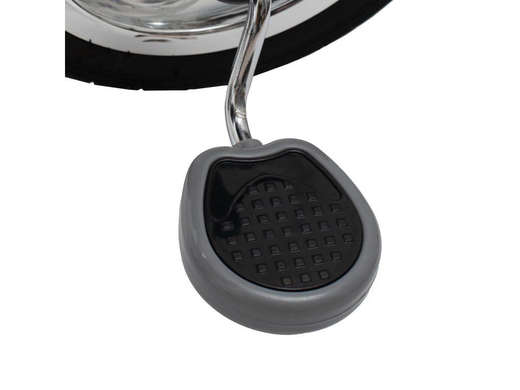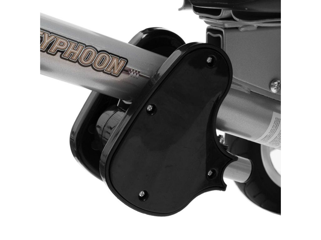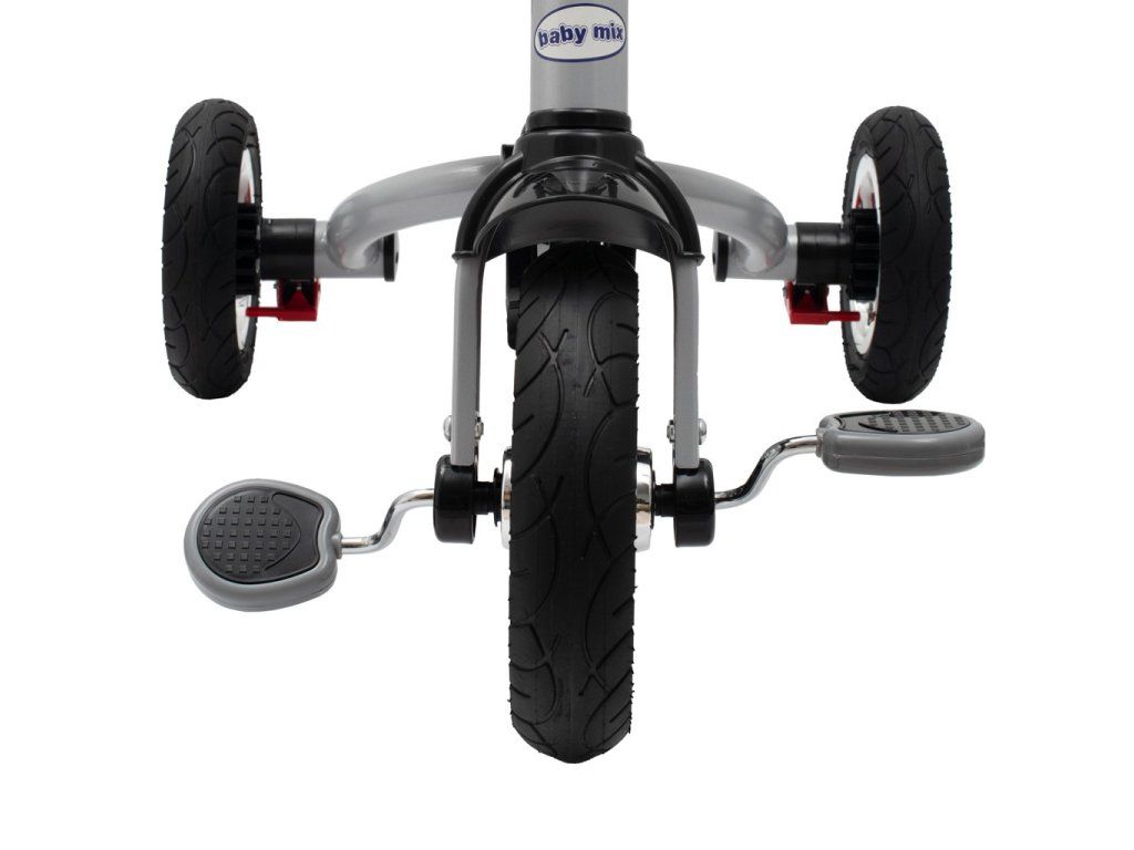 Detská šliapacia trojkolka Baby Mix TYPHOON je multifunkčný dopravný prostriedok a je typickým príkladom produktov GROW UP - rastie zároveň s dieťaťom. Trojkolku môže ovládať ako dieťa, tak aj rodič pomocou nastaviteľnej vodiacej tyče. Po odobratí vodiacej tyče, sklápacej striešky a opierok bude slúžiť ako klasická šliapacia trojkolka. Pevná oceľová konštrukcia zaistí dieťaťu bezpečnosť a zaručí jej používanie po mnoho rokov. Pohodlné a ergonomicky tvarované sedadlo je otočné o 360 stupňov, čo umožní dieťaťu cestovať v smere alebo proti smeru jazdy. O pohodlie a bezpečie počas jazdy sa stará odnímateľná hrazda, trojbodové bezpečnostné pásy, pohodlné odnímateľné stupačky alebo gumové kolesá, ktorá skvele absorbujú nerovnosti, poskytujú perfektnú priľnavosť a nevyžadujú hustenie. Pre uloženie hračiek alebo potrieb pre dieťa je tu praktický úložný košík.
