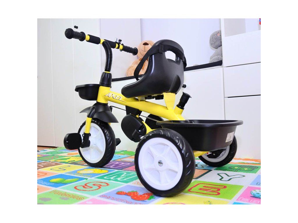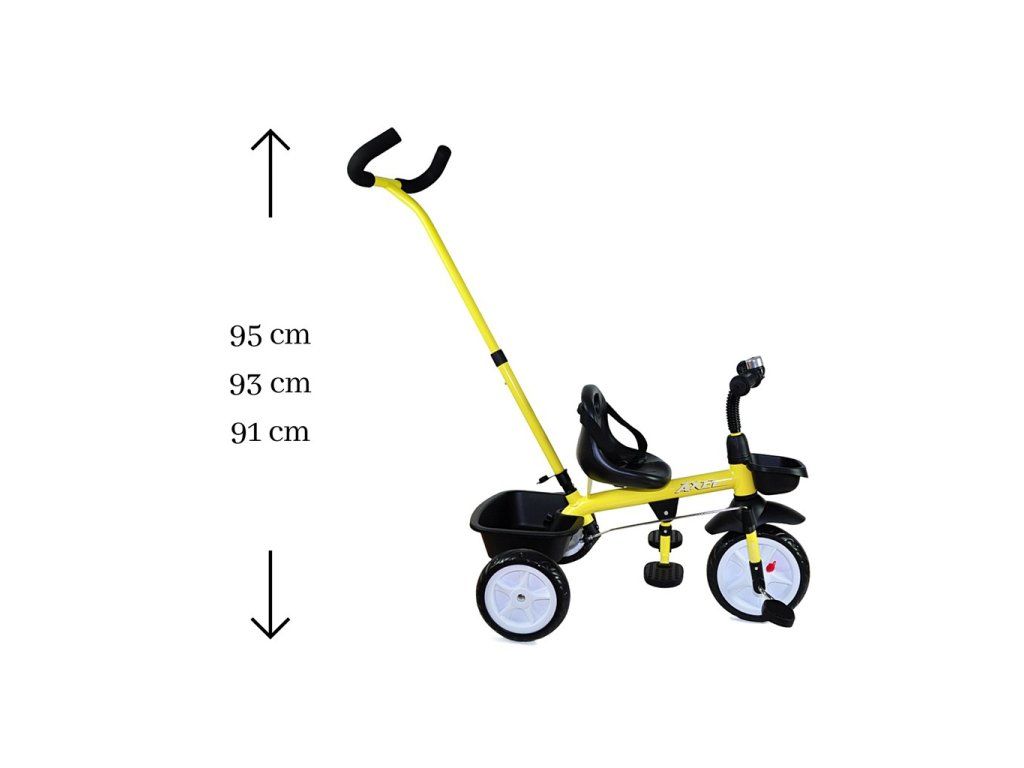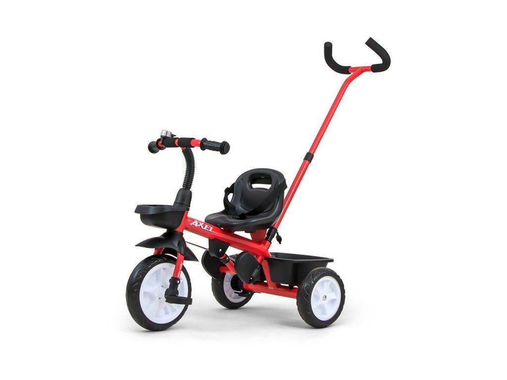 Detská šliapacia trojkolka s rukoväťou Axel je určená pre deti vo veku od 1 do 3 rokov. Je vyrobená z kvalitných a odolných materiálov. Má pohodlné a ergonomicky tvarované sedadlo, kde vzdialenosť k riadidlám možno ľahko nastaviť a tým prispôsobiť trojkolku veku a výške dieťaťa. Trojkolka patrí k produktom skupiny GROW UP, teda rastie s dieťaťom. Na prednom kolese je možné uvoľniť náhon na pedále a pomocou vodiacej tyče tlačiť malého pretekára, keď mu dôjdu sily. Široké kolesá vyrobené z tvrdenej peny EVA, zaručí pohodlie a odolnosť na každom povrchu. Do dvoch praktických košíkov si váš malý pretekár naskladá všetky potrebné hračky a môže vyraziť v ústrety dobrodružstvám. Kombinácia kovovej konštrukcie a súčiastok vyrobených z najkvalitnejších materiálov zaručuje odolnosť za všetkých podmienok. Pre maximálne bezpečie dieťaťa má trojkolka trojbodové bezpečnostné pásy.
