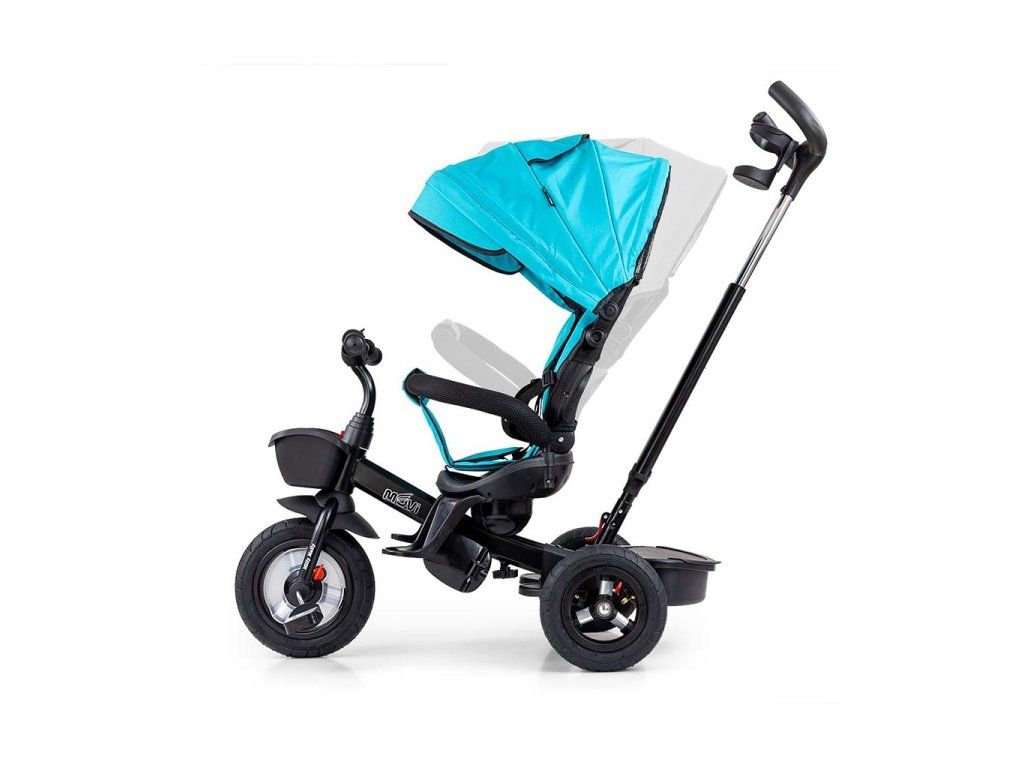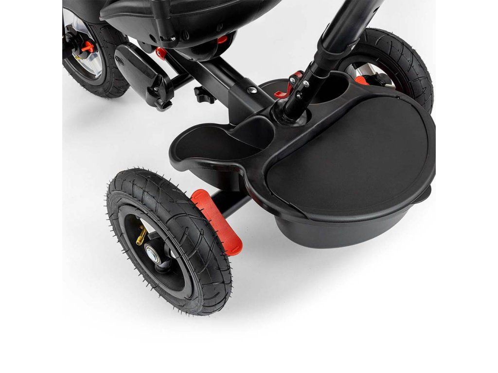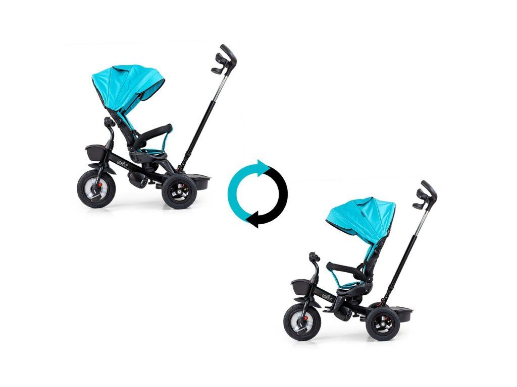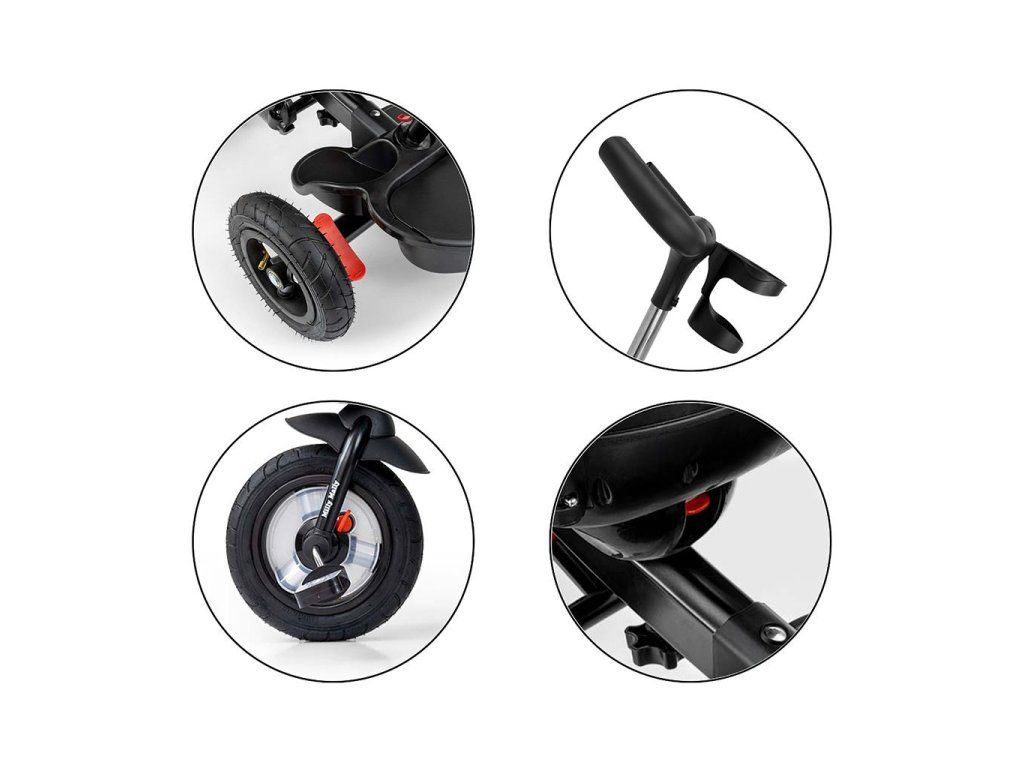 Je vyrobená z kvalitných a odolných materiálov. Má modernú konštrukciu, pohodlné a ergonomicky tvarované sedadlo, ktoré je otočné o 360 stupňov, čo umožní dieťaťu cestovať v smere alebo proti smeru jazdy. O pohodlie a bezpečie počas jazdy sa starajú bariérky, trojbodové bezpečnostné pásy, pohodlné stúpatka, alebo veľké nafukovacie kolesá, ktoré skvele absorbujú nárázy a poskytujú dobrú priľnavosť. Trojkolku môže ovládať ako dieťa, tak aj rodič pomocou nastaviteľnej rukoväte pre tlačenie. Po odobratí vodiacej tyče, sklápacej striešky, ktorá chráni pred slnkom alebo ostatných komponentov bude slúžiť ako trojkolka. Trojkolku je možné používať aj ako alternatívu golfového kočíka. Pre uloženie hračiek, alebo potrieb pre dieťa je tu praktický úložný košík.