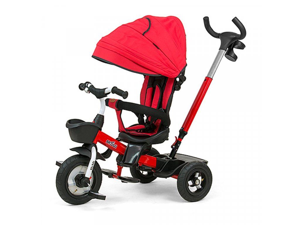 Je vyrobená z kvalitných a odolných materiálov. Má modernú konštrukciu, pohodlné a ergonomicky tvarované sedadlo, ktoré je otočné o 360 stupňov, čo umožní dieťaťu cestovať v smere alebo proti smeru jazdy. O pohodlie a bezpečie počas jazdy sa starajú bariérky, trojbodové bezpečnostné pásy, pohodlné stúpatka, alebo veľké nafukovacie kolesá, ktoré skvele absorbujú nárázy a poskytujú dobrú priľnavosť. Trojkolku môže ovládať ako dieťa, tak aj rodič pomocou nastaviteľnej rukoväte pre tlačenie. Po odobratí vodiacej tyče, sklápacej striešky, ktorá chráni pred slnkom alebo ostatných komponentov bude slúžiť ako trojkolka. Trojkolku je možné používať aj ako alternatívu golfového kočíka. Pre uloženie hračiek, alebo potrieb pre dieťa je tu praktický úložný košík.