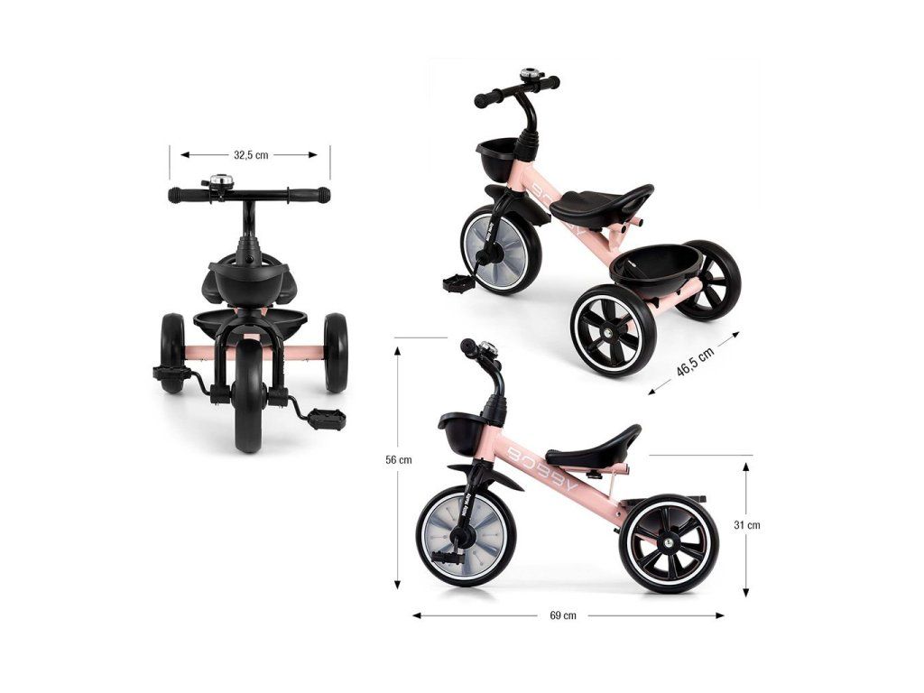 Trojkolka BOBBY bola vytvorená s ohľadom na pohodlie a bezpečnosť detí a komfort rodičov. Ideálne riešenie pre aktívne deti, ktoré už nebaví jazdiť v kočíku. Bobby je stabilná a bezpečná trojkolka pre vaše dieťa s nadčasovým dizajnom a pohodlným tvarovaným sedadlom. Predné koleso je zabezpečené tak, aby sa zabránilo zachyteniu nôh vášho dieťaťa, keď náš malý cyklista šliape do pedálov. Riadidlá bicykla sú odnímateľné pomocou tlačidla na prednej strane riadidiel.