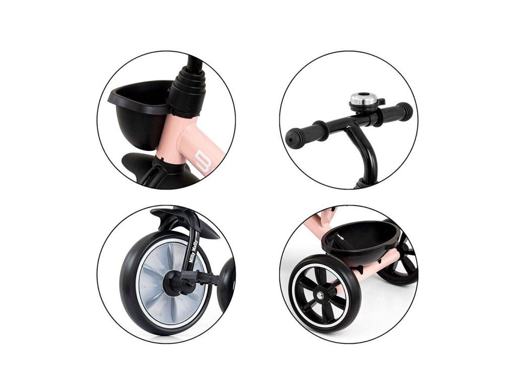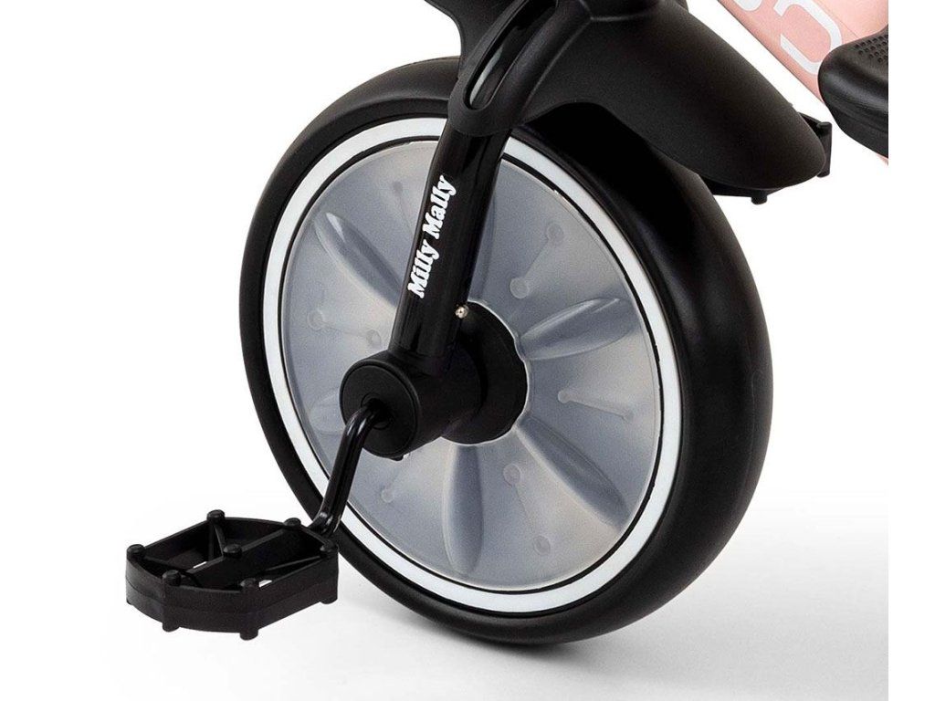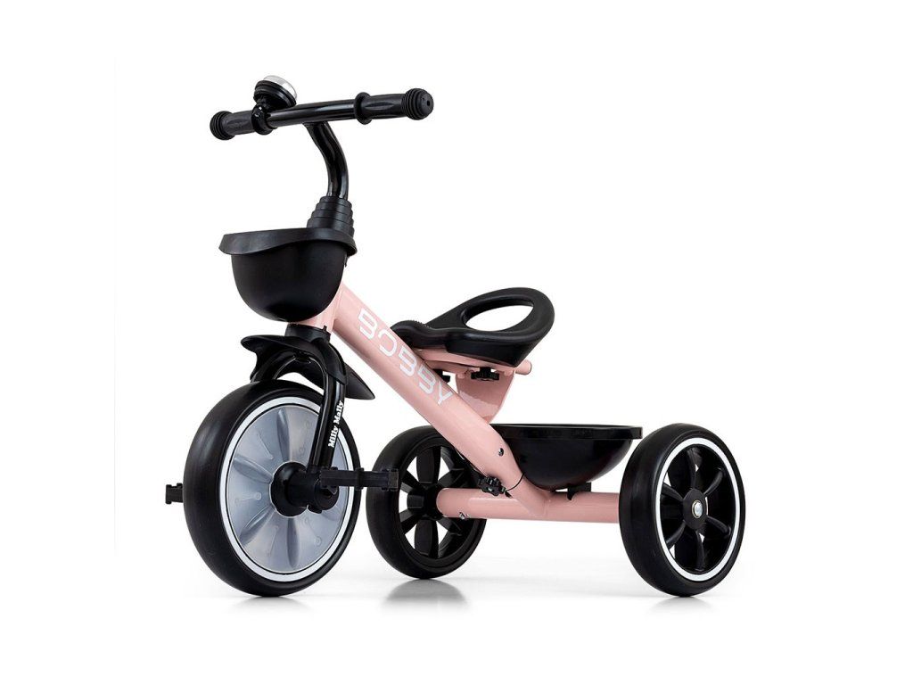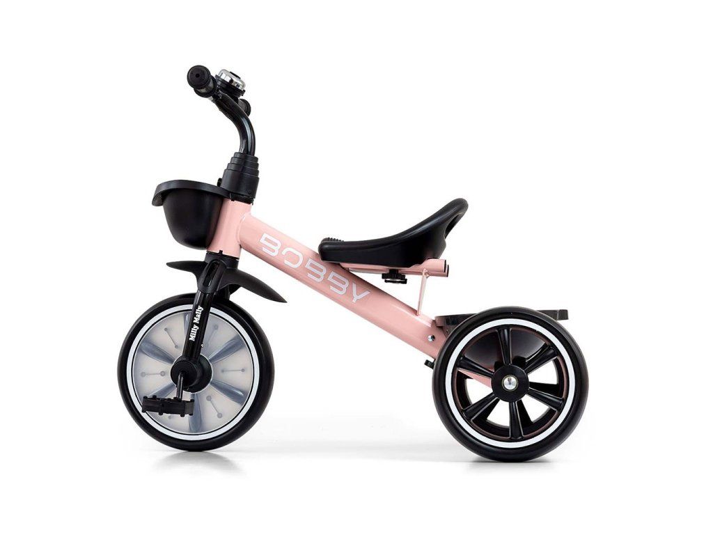 K pohodliu bicykla Bobby by Milly Mally prispieva krásne navrhnuté a tvarované sedadlo, ktoré slúži aj ako rukoväť na prenášanie. Kombinácia kovovej konštrukcie a komponentov vyrobených z najkvalitnejších materiálov zaručuje odolnosť, ktorá bude fungovať za každých podmienok. A široké a odolné kolesá z peny EVA zaručujú trvanlivosť a dlhé používanie. Trojkolka BOBBY s odnímateľnými pedálmi má 2 košíky, jeden umiestnený na riadidlách, druhý v zadnej časti bicykla, napríklad na hračky. Pri jazde na bicykli si dieťa precvičuje hrubú motoriku, silu a svaly nôh, udržiava rovnováhu a zlepšuje pohybovú koordináciu, čím sa správne a zdravo rozvíja.