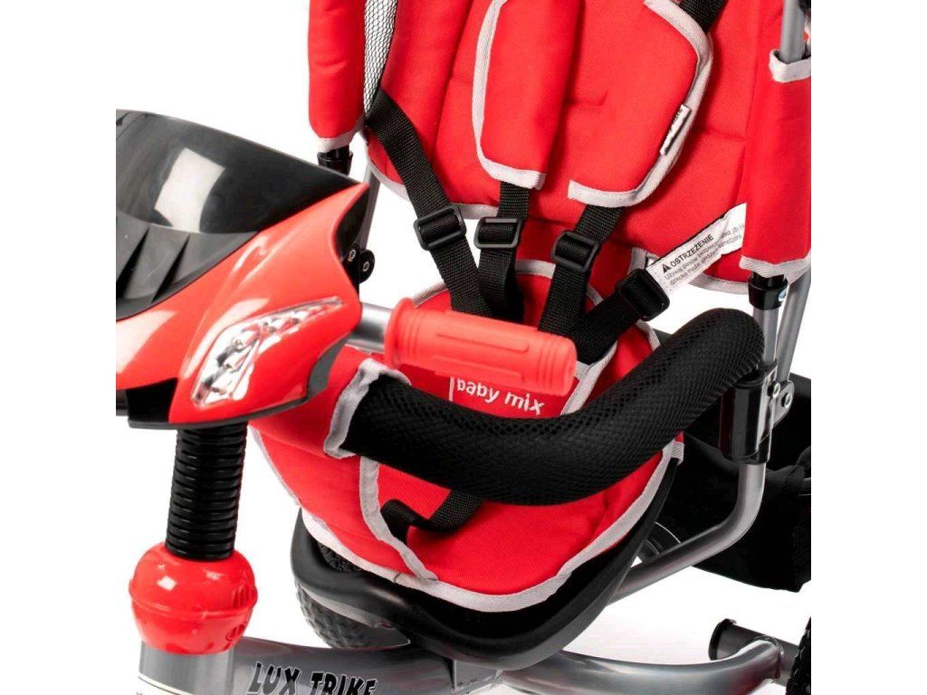 Predstavujeme Vám krásnu detskú šliapaciu trojkolku so svetlami a klaksónom Baby Mix Lux Trike. Predná časť panelu obsahuje LED svetlá a smerovky. Na zadnej strane panelu, smerom k dieťaťu, sú potom umiestnené tlačidlá pre zapínanie svetiel, smeroviek, vrátane imitácie zvuku smeroviek, klaksón a otočný ovládač po ktorého otočení trojkolka vydáva zvuk naštartovania motora a rozjazdu pretekárskeho auta. Napájanie 3 x 1,5 V typ batérie AA. Výrobok neobsahuje batérie.