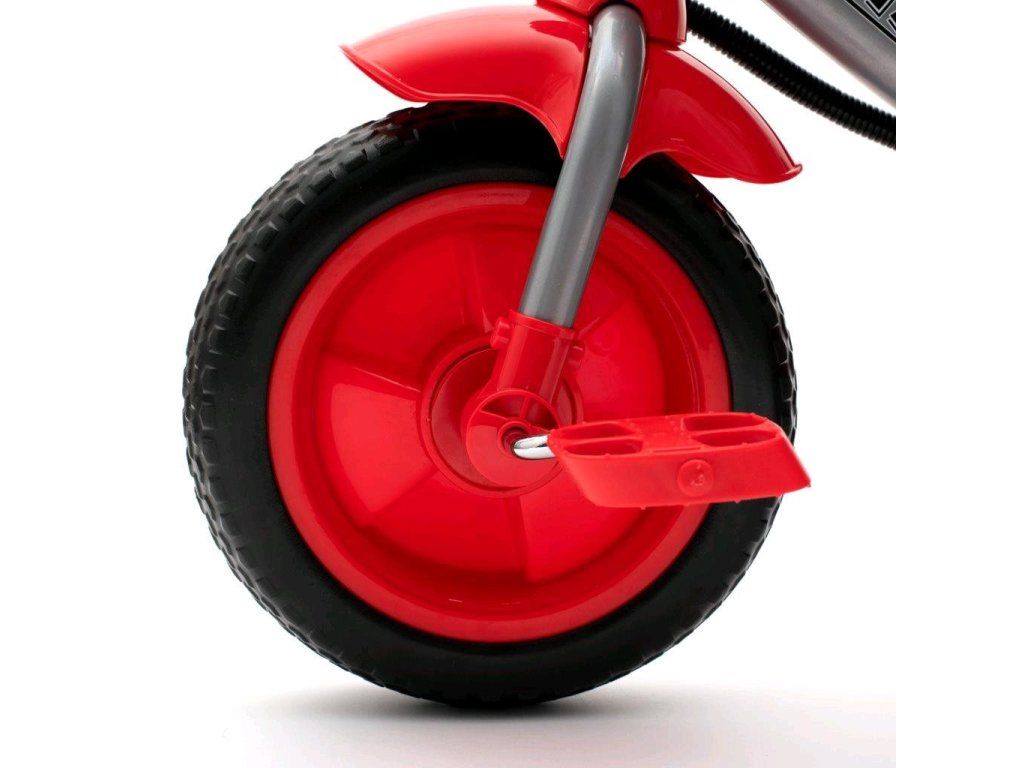 Predstavujeme Vám krásnu detskú šliapaciu trojkolku so svetlami a klaksónom Baby Mix Lux Trike. Predná časť panelu obsahuje LED svetlá a smerovky. Na zadnej strane panelu, smerom k dieťaťu, sú potom umiestnené tlačidlá pre zapínanie svetiel, smeroviek, vrátane imitácie zvuku smeroviek, klaksón a otočný ovládač po ktorého otočení trojkolka vydáva zvuk naštartovania motora a rozjazdu pretekárskeho auta. Napájanie 3 x 1,5 V typ batérie AA. Výrobok neobsahuje batérie.