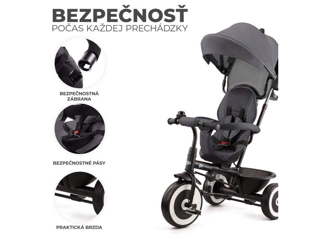 ASTON je trojkolka určená pre deti vo veku od 9 mesiacov do približne 5 rokov. Je to detský bicykel, ktorý rastie spolu s vaším dieťaťom. Vďaka rôznym nastaveniam ju môžete ľahko prispôsobiť veku a výške vášho dieťatka. ASTON bude najskôr slúžiť ako spoločník pri chôdzi od chvíle, keď sa vaše dieťa naučí sedieť. Stačí otočiť sedadlo tvárou k sebe, pripútať dieťa bezpečnostným pásom a môžete vyraziť!Keď vaše dieťatko vyrastie, môžete sedačku jednoducho otočiť proti smeru jazdy. Spočiatku budete môcť vďaka špeciálnym funkciám bicykla ovládať rýchlosť a smer jazdy a neskôr, keď príde čas na samostatnú jazdu, môžete detský bicykel nastaviť tak, aby vaše dieťa jazdilo samostatne. S bicyklom ASTON nebude žiadna prechádzka nudná!
