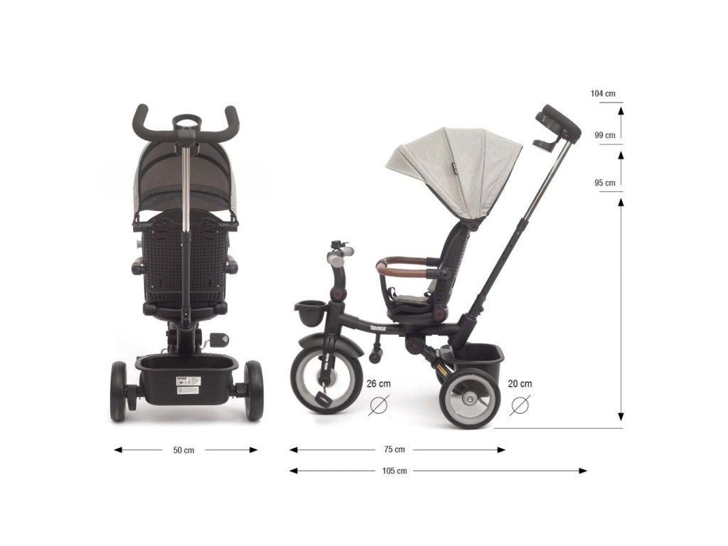 Twinkle je vybavená nastaviteľnou rukoväťou, funkciou voľnobehu, brzdou, bezpečnostnými pásmi s chráničmi a pohodlným trojpolohovým operadlom a zaručuje úplnú kontrolu a pohodlie pre dieťa aj rodičov. Jej ľahký, ale odolný oceľový rám, kolesá s penovou výplňou a guličkovými ložiskami, skladacia konštrukcia a praktické prvky, ako je sieťovaná strieška, LED svetlo, držiak na nápoje a dva úložné boxy, z nej robí perfektnú voľbu pre každú príležitosť - v meste, na prechádzke alebo na výlete. Po odstránení rukoväte, koľajníc a striešky je možné Twinkle používať ako klasickú trojkolku.