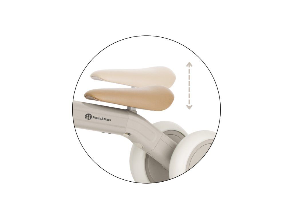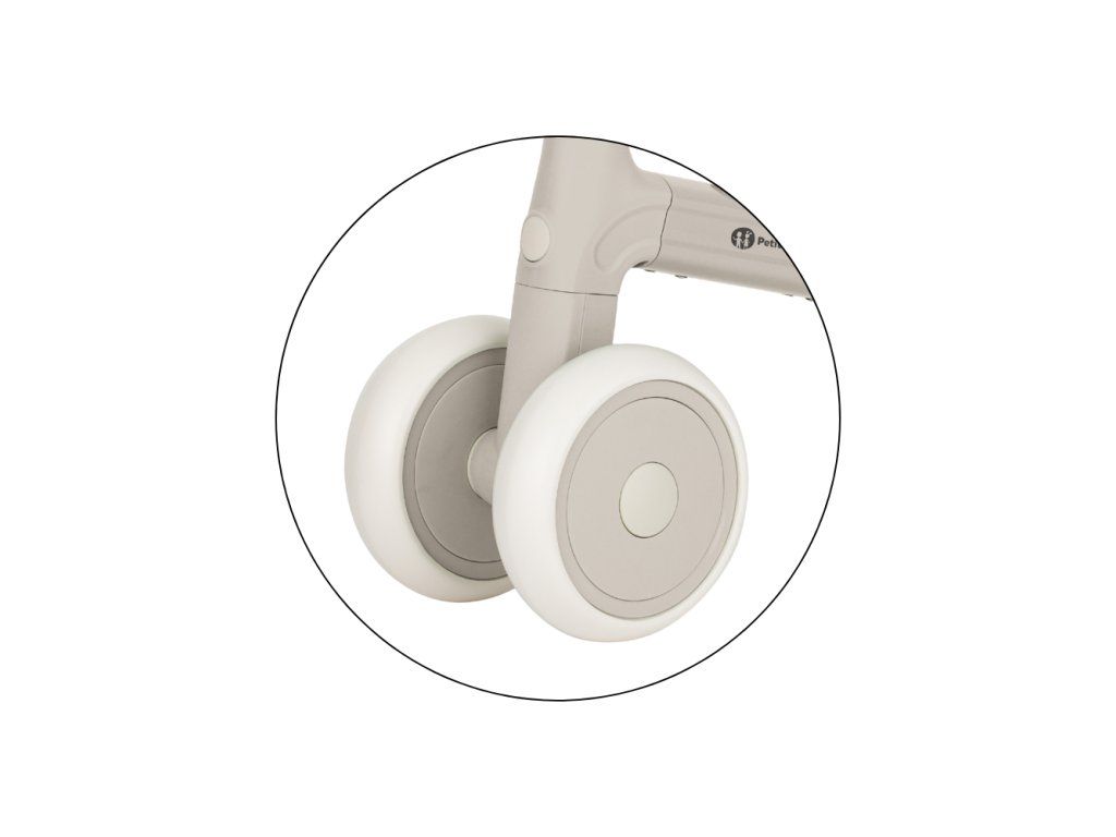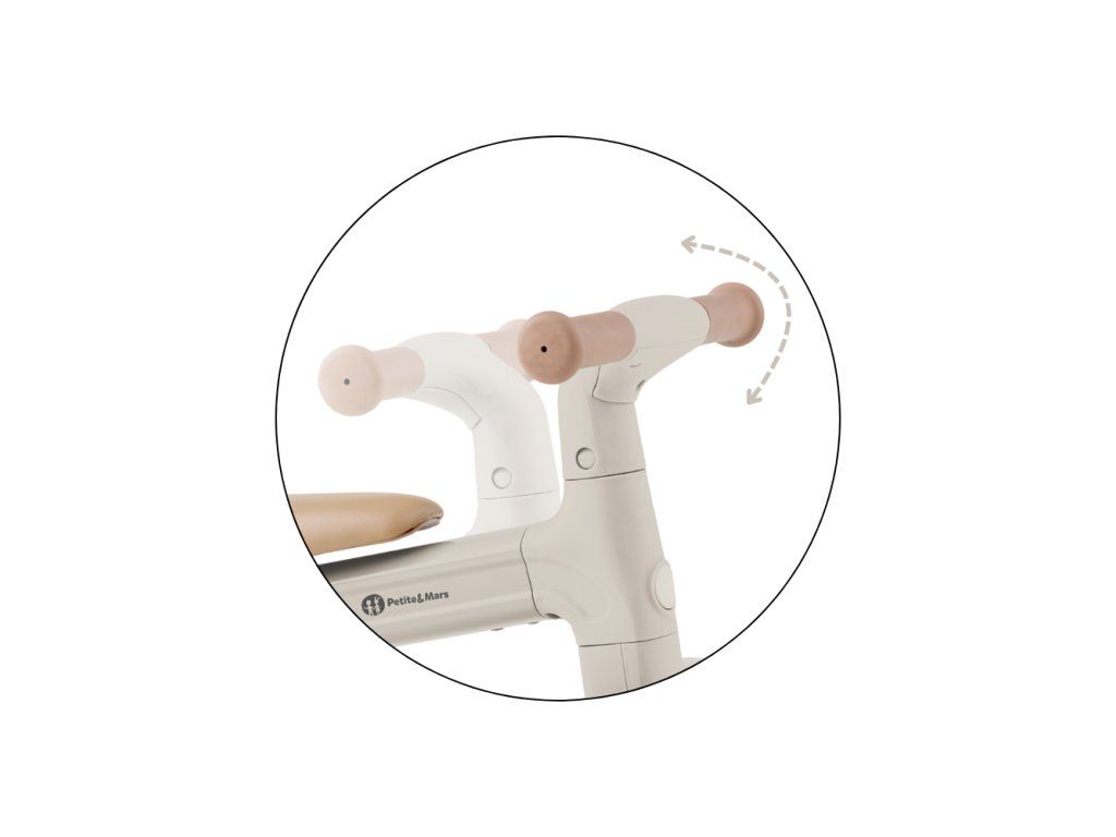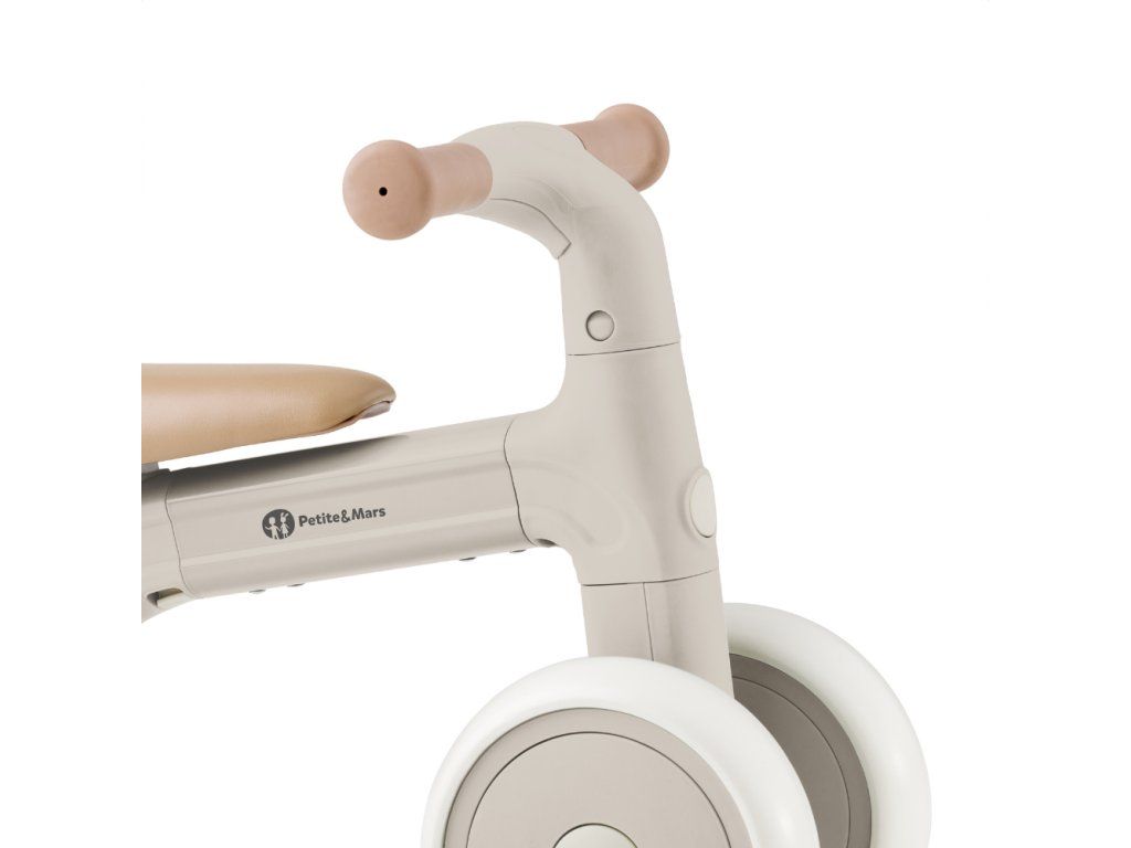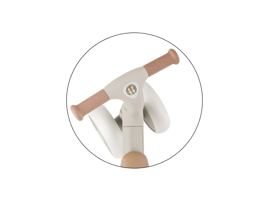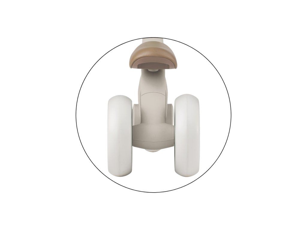 Bingo má otočné riadidlá, dve nastaviteľné výšky sedadla a váži len 2,3 kg, takže ho rodičia bez problémov prenesú – aj popri taške či dieťati v druhej ruke. Penové kolieska sú tiché a zvládnu interiér aj vonkajší povrch. Celý dizajn pôsobí moderne, jemne a zároveň nadčasovo.