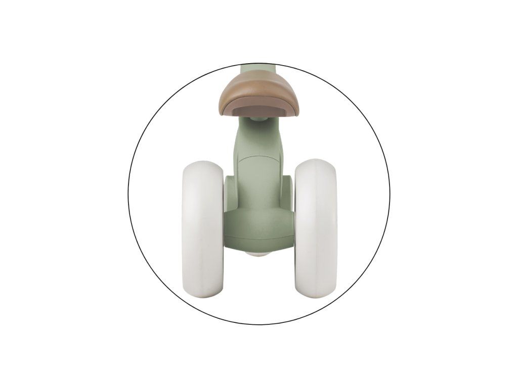 Bingo má otočné riadidlá, dve nastaviteľné výšky sedadla a váži len 2,3 kg, takže ho rodičia bez problémov prenesú – aj popri taške či dieťati v druhej ruke. Penové kolieska sú tiché a zvládnu interiér aj vonkajší povrch. Celý dizajn pôsobí moderne, jemne a zároveň nadčasovo.