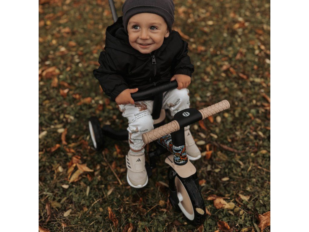 Multifunkčná trojkolka určená pre deti od 1,5 do 5 rokov alebo do 25 kilogramov je nielen dopravný prostriedok na presun a učenie sa rovnováhy, ale aj spoločník pre rastúce dieťa počas mnohých vývojových fáz. Vďaka premyslenej transformácii sa prispôsobí aktuálnym motorickým schopnostiam dieťatka – od trojkolky s asistenciou rodiča až po plnohodnotný bicykel s pedálmi.