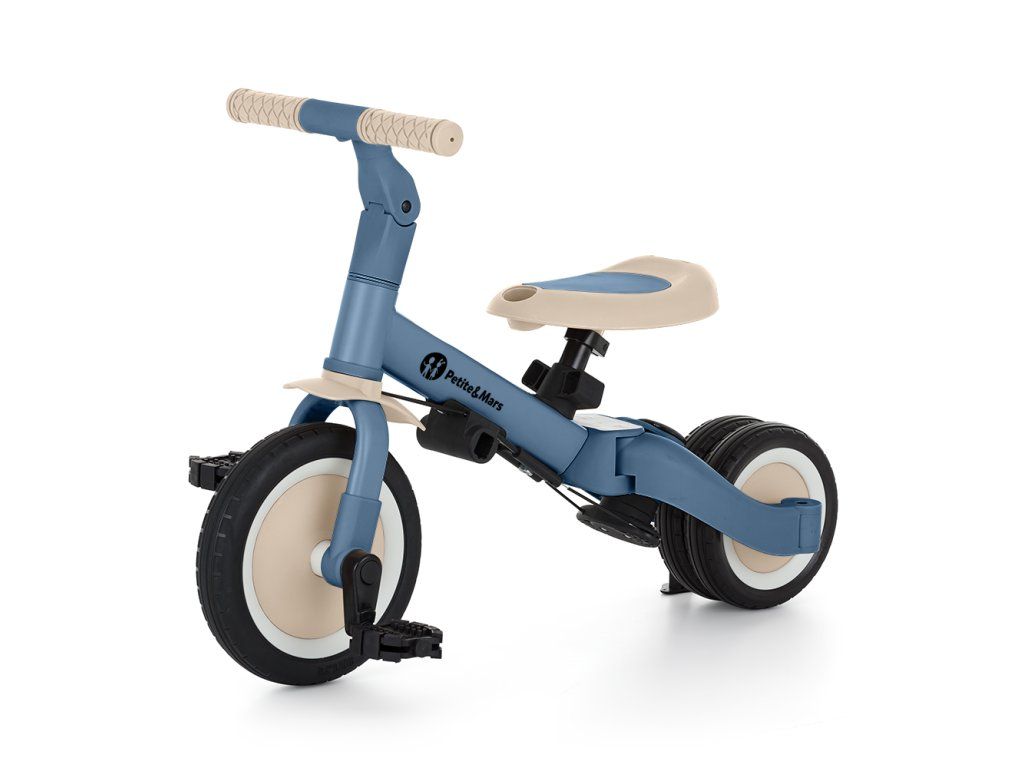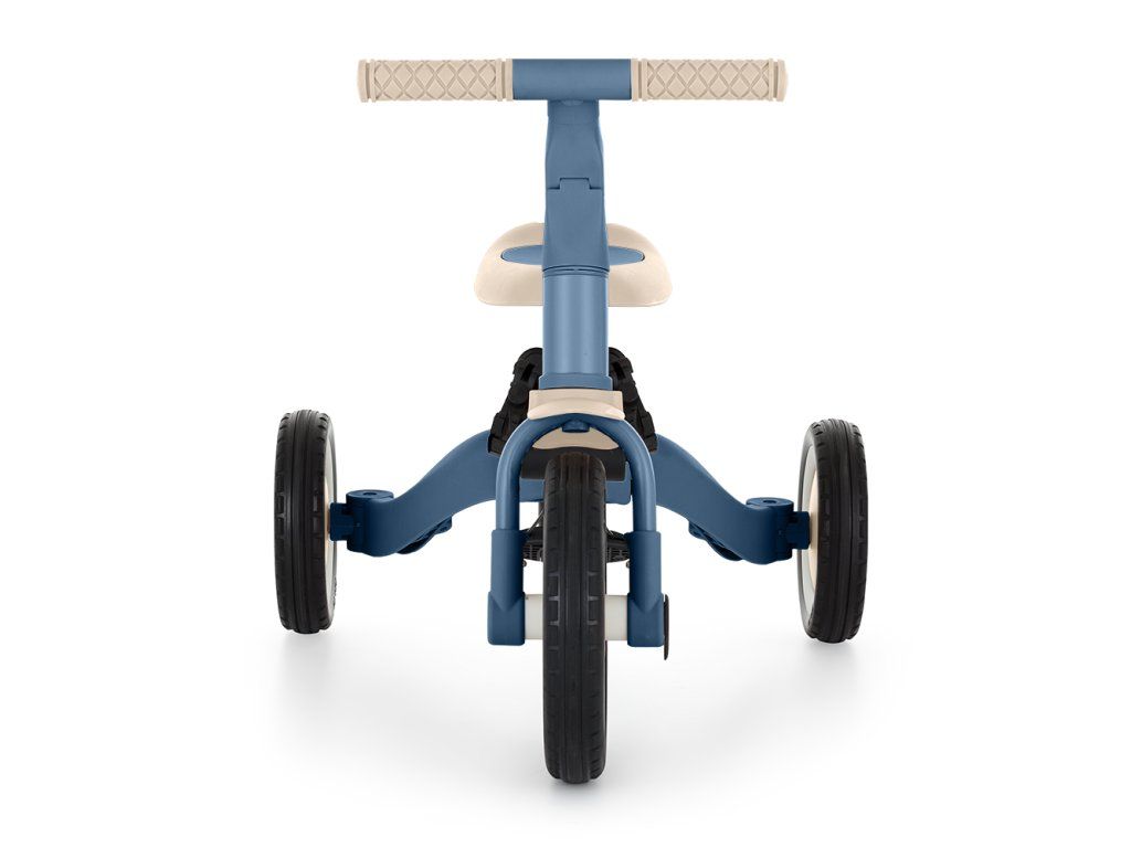 Riadidlá s protišmykovými gumovými rukoväťami sú nastaviteľné, pedále sú odnímateľné a sedlo sa prispôsobí výške, pričom vďaka nastaviteľným bezpečnostným pásom je zaistená maximálna bezpečnosť. Vďaka odolným gumovým kolesám je bicykel ideálny pre dvoj- aj trojkolesové verzie, ktoré zaručujú stabilitu na rôznych povrchoch.