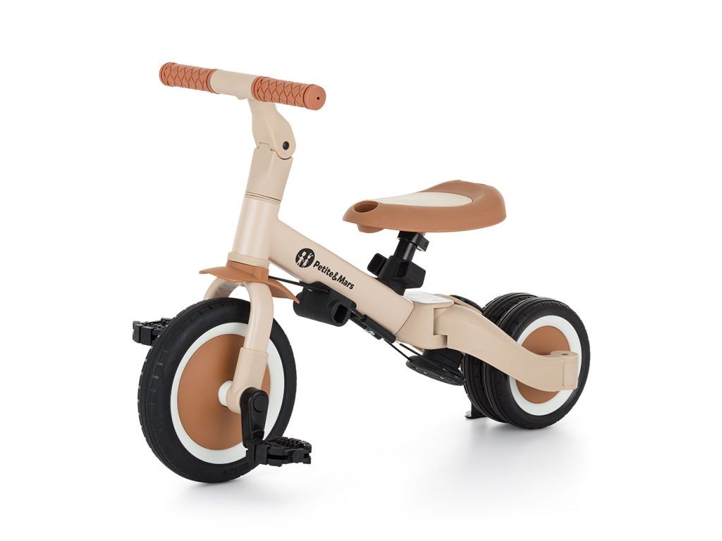Riadidlá s protišmykovými gumovými rukoväťami sú nastaviteľné, pedále sú odnímateľné a sedlo sa prispôsobí výške, pričom vďaka nastaviteľným bezpečnostným pásom je zaistená maximálna bezpečnosť. Vďaka odolným kolesám je bicykel ideálny pre dvoj- aj trojkolesové verzie, ktoré zaručujú stabilitu na rôznych povrchoch.