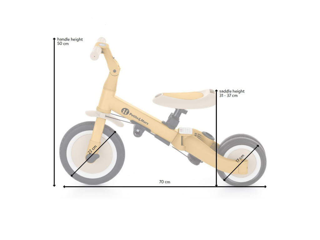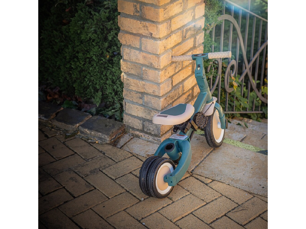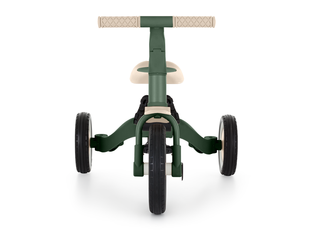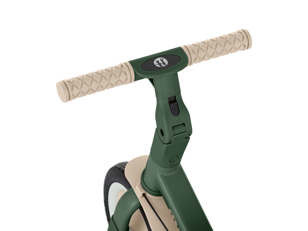 Riadidlá s protišmykovými gumovými rukoväťami sú nastaviteľné, pedále sú odnímateľné a sedlo sa prispôsobí výške, pričom vďaka nastaviteľným bezpečnostným pásom je zaistená maximálna bezpečnosť. Vďaka odolným kolesám je bicykel ideálny pre dvoj- aj trojkolesové verzie, ktoré zaručujú stabilitu na rôznych povrchoch.