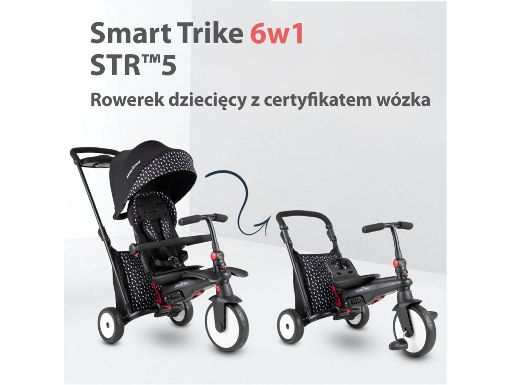 Smart Trike Skladacia detská trojkolka / kočík 7v1 STR™5, čierno-biely