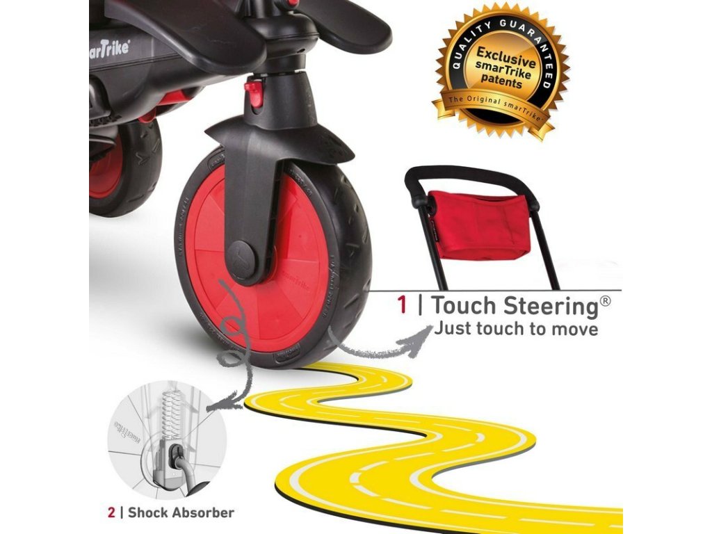 Technológia Touch Steering® poskytuje rodičom brilantné ovládanie trojkolky bez akejkoľvek snahy o riadenie. Stačí sa zľahka dotknúť rodičovskej rukoväte a volant sa intuitívne otočí správnym smerom.