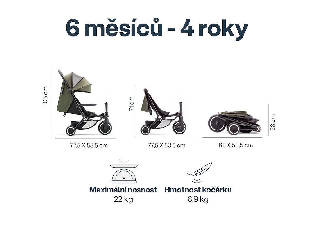 rozmery v režime trojkolky: 77,5 x 53,5 x 71 cm