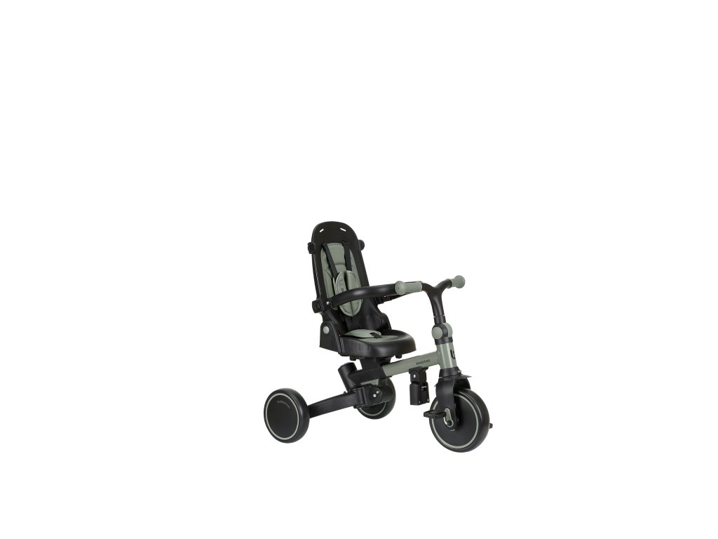 Pre maximálne bezpečie je trojkolka vybavená 5-bodovým pásom, odnímateľným bezpečnostným madlom a nastaviteľnou strieškou, ktorú je možné podľa potreby odňať. Nechýba sklápacia opierka chrbta nastaviteľná do 4 polôh, nastaviteľné riadidlá a otočné sedátko.