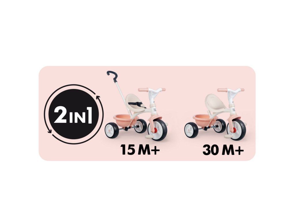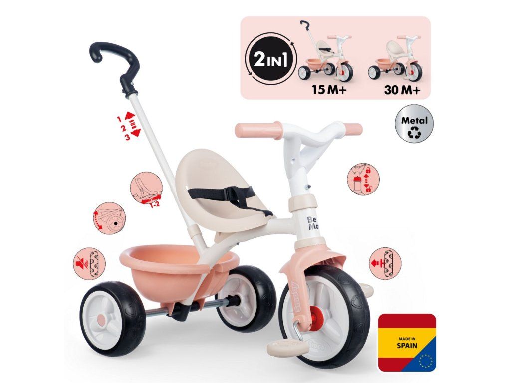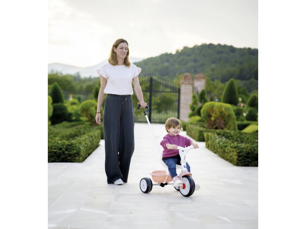 Šliapacia trojkolka pre dievčatká v ružovej farbe má kovový rám, nastaviteľnú a odnímateľnú vodiacu tyč (3 výškové úrovne, max. 95 cm), protišmykové pedále s možnosťou zablokovania šliapania, nastaviteľné ergonomické sedadlo na 2 pozície, bezpečnostný pás, výklopný plastový košík a tiché kolieska . Nosnosť 50 kg. Rozmery: 68 x 52 x 52 cm. Hmotnosť: 3,479 kg.Dodatočné parametre