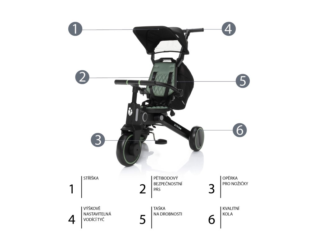 modeli trojkolky X Trike je zabezpečenie zaistené 5bodovými pásmi, nastaviteľnou