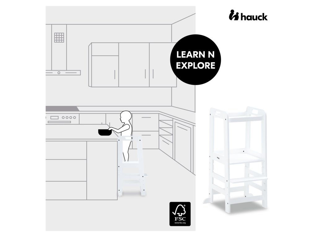 Vďaka zvýšenej polohe schodíka sa vaše dieťa môže zapojiť do bežných rodinných aktivít a pomáhať vám, bezpečne vo výške očí. V duchu Montessori princípu "Pomôž mi, aby som to zvládol sám" sa vaše dieťa od útleho veku zapája do hry, napríklad do varenia alebo pečenia, aby sa posilnila jeho samostatnosť, jazykový a sociálny rozvoj a sebadôvera. Veža hauck má certifikát FSC®, čo znamená, že bukové drevo pochádza z lesov s certifikátom FSC a z trvalo udržateľného lesného hospodárstva.
