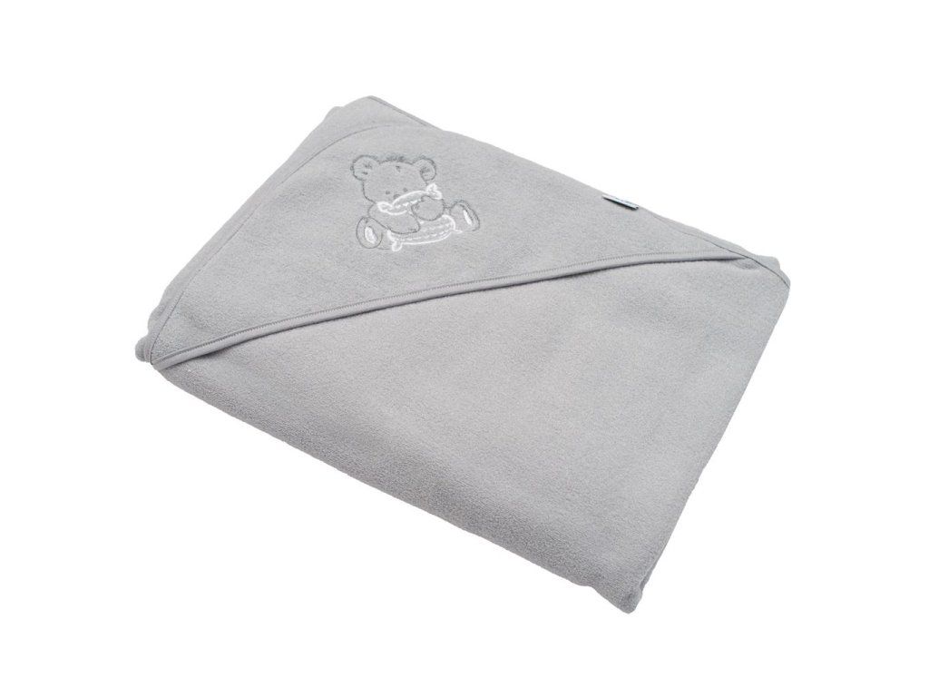 Detská froté osuška s výšivkou a kapuckou New Baby 100x100 sivá myška - 41529