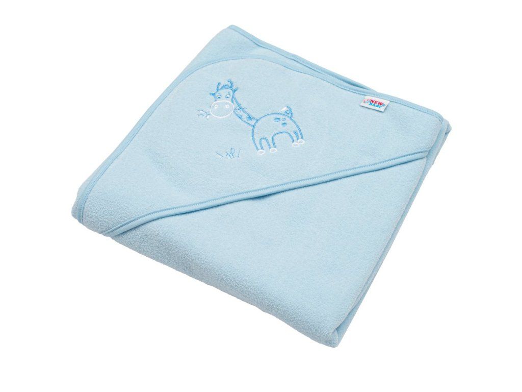 Detská froté osuška s výšivkou a kapuckou New Baby 80x80 modrá žirafka - 41521